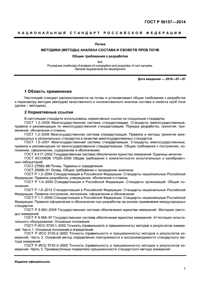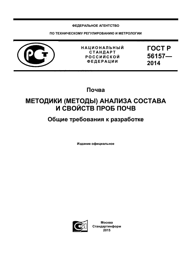 Настоящий стандарт распространяется на почвы и устанавливает общие требования к разработке и пересмотру методик (методов) качественного и количественного анализа состава и свойств проб почв
