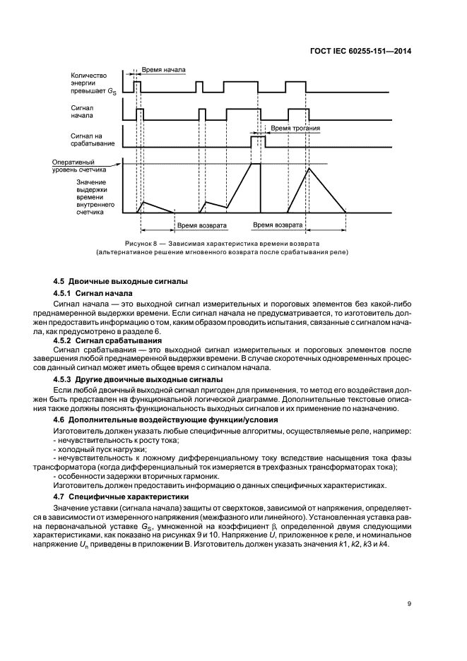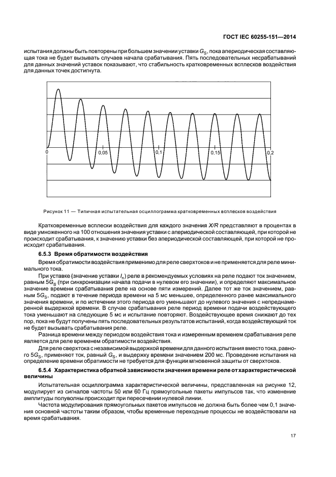 Настоящий стандарт устанавливает минимальные требования к токовым реле сверхтока и минимального тока. Настоящий стандарт включает в себя определение функций защиты, характеристик измерений и времен возврата.