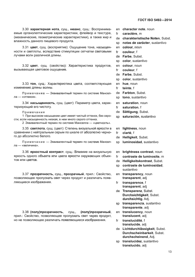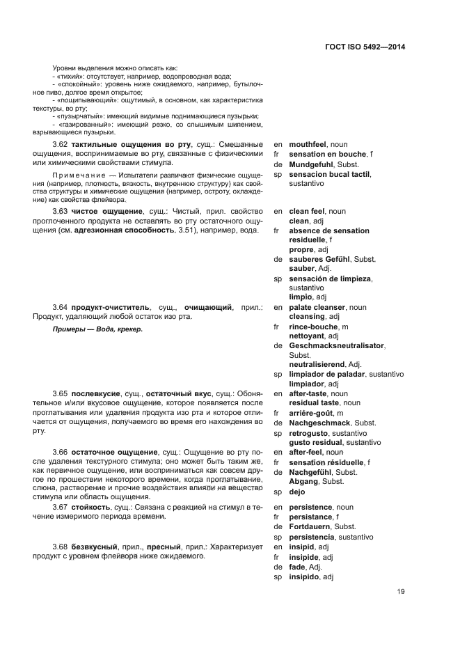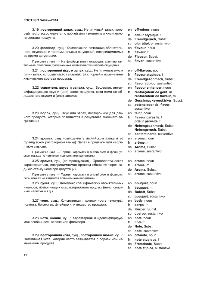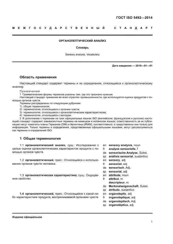 | Область и условия применения: | Настоящий стандарт содержит термины и их определения, относящиеся к органолептическому анализу |