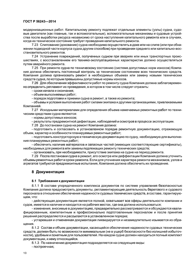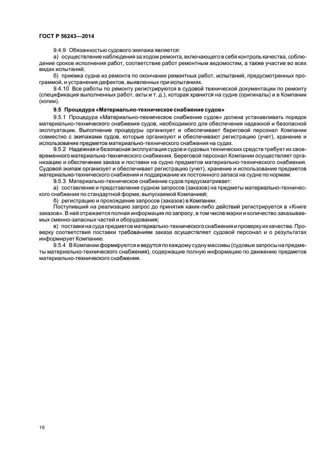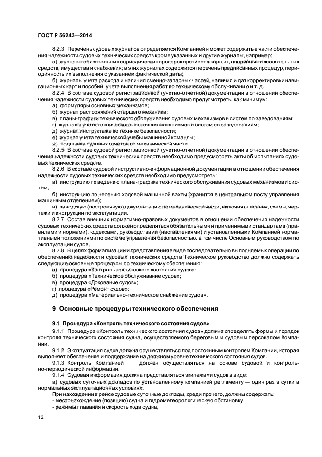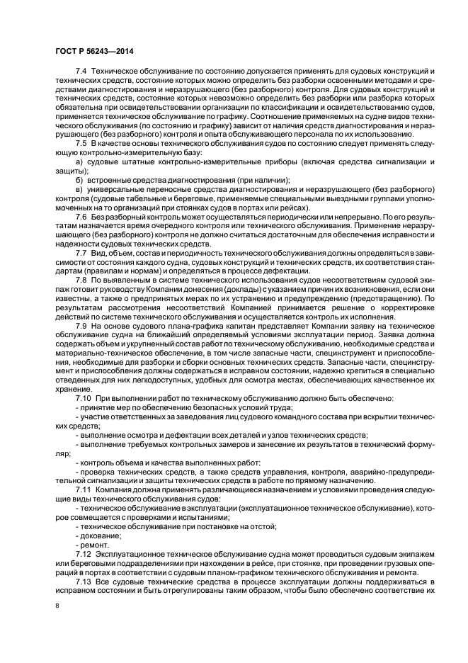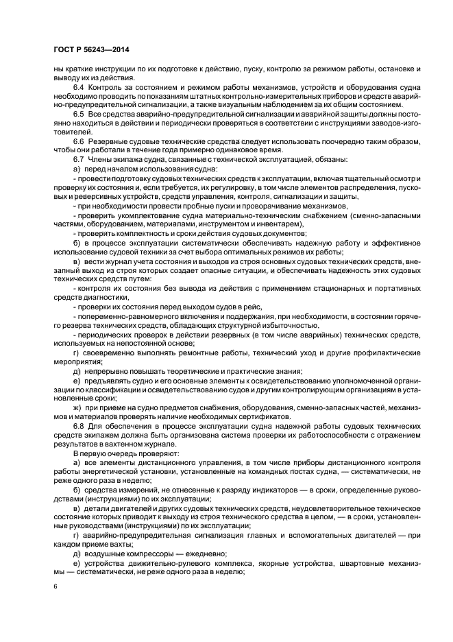 | Область и условия применения: | Настоящий стандарт устанавливает требования к проведению судовладельцем (мероприятий по обеспечению надежности механизмов, устройств, оборудования судов (удовлетворяющих ГОСТ Р 55631 и ГОСТ Р 55633), в том числе регулярные проверки механизмов, устройств, оборудования, которые не используются постоянно.