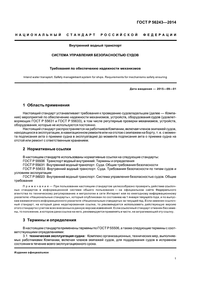 | Название рус.: | Внутренний водный транспорт. Система управления безопасностью судов. Требования по обеспечению надежности механизмов |