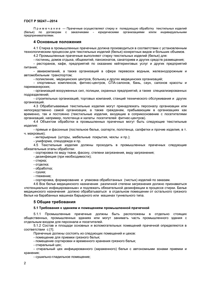Настоящий стандарт распространяется на промышленные прачечные, принадлежащие юридическим организациям и индивидуальным предпринимателям, осуществляющие обработку текстильных изделий (белья) по договорам с организациями различных форм собственности и ведомственной принадлежности.