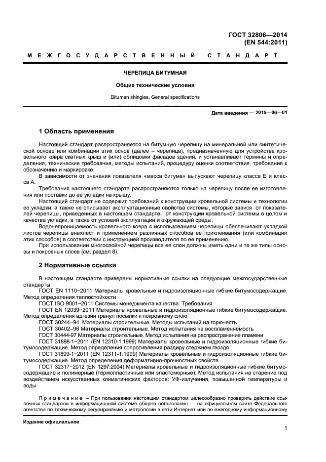 | Название рус.: | Черепица битумная. Общие технические условия |