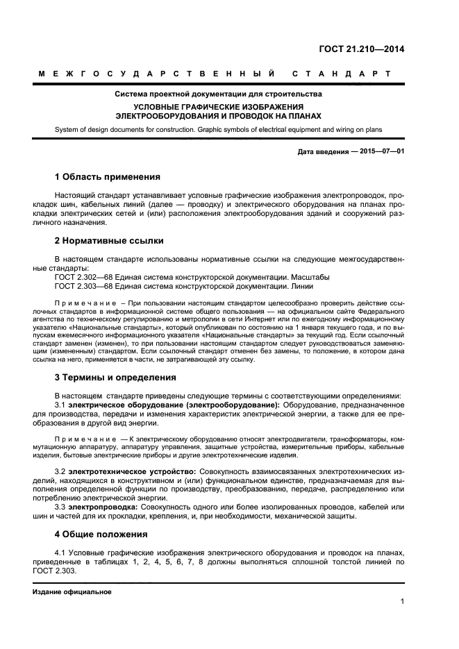 | Область и условия применения: | Настоящий стандарт устанавливает условные графические изображения электропроводок, прокладок шин, кабельных линий и электрического оборудования на планах прокладки электрических сетей и (или) расположения электрооборудования зданий и сооружений различного назначения |