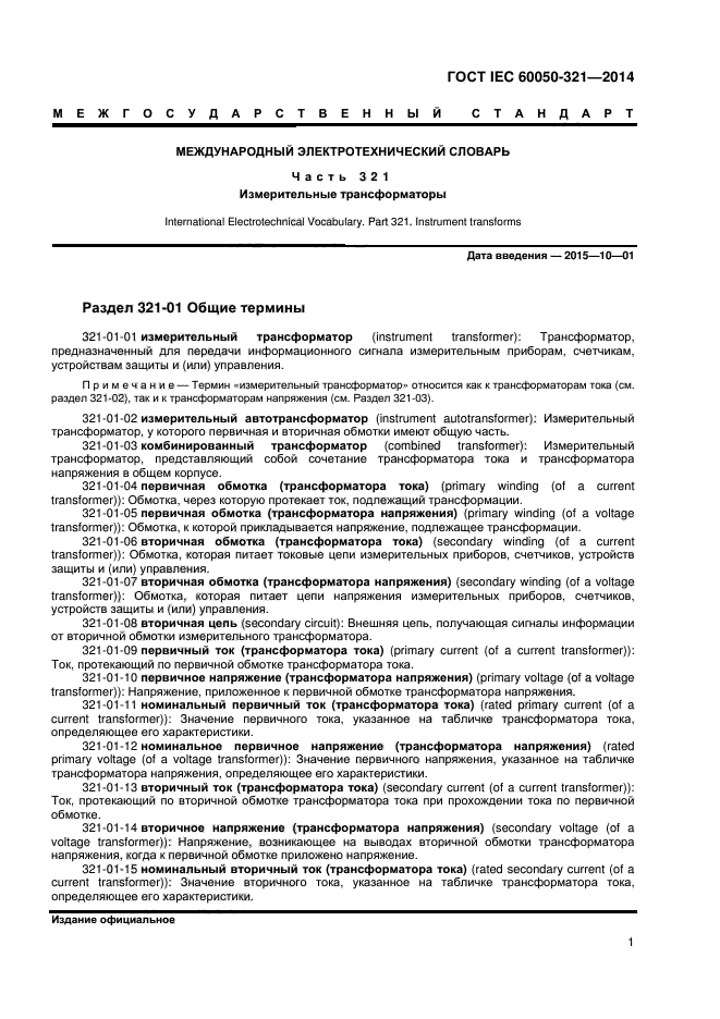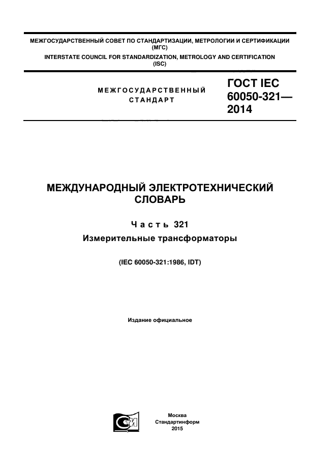 | Название рус.: | Международный электротехнический словарь. Часть 321. Измерительные трансформаторы |