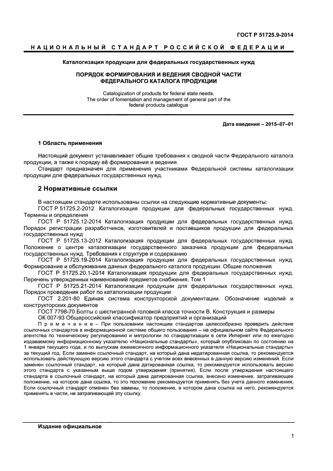 | Область и условия применения: | Настоящий документ устанавливает общие требования к сводной части Федерального каталога продукции, а также к порядку её формирования и ведения.