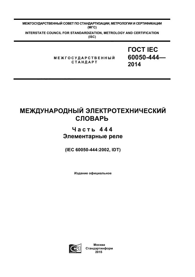 | Название рус.: | Международный электротехнический словарь. Часть 444. Элементарные реле |