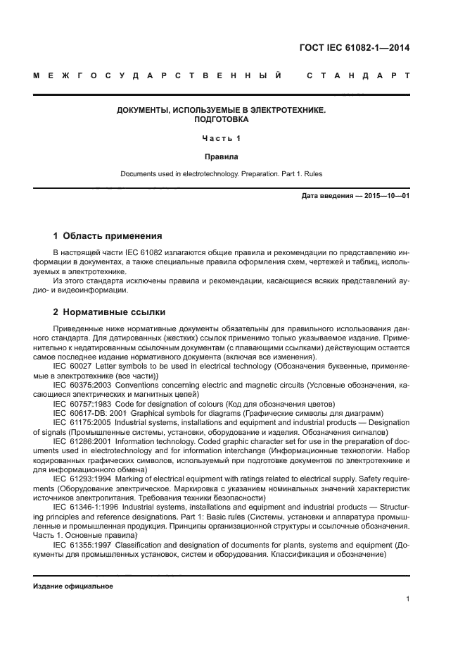 В настоящей части IEC 61082 излагаются общие правила и рекомендации по представлению информации в документах, а также специальные правила оформления схем, чертежей и таблиц, используемых в электротехнике