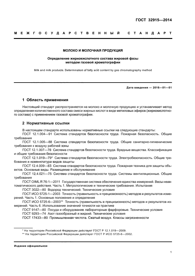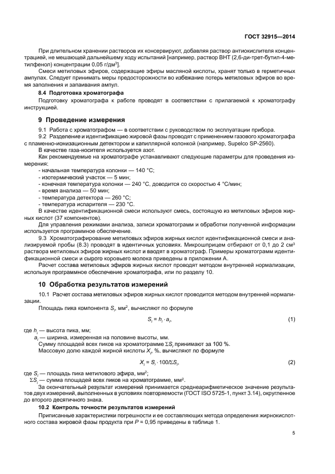 Настоящий стандарт распространяется на молоко и молочную продукцию и устанавливает метод определения количественного состава смеси жирных кислот в виде метиловых эфиров (жирнокислотного состава) с применением газовой хроматографии