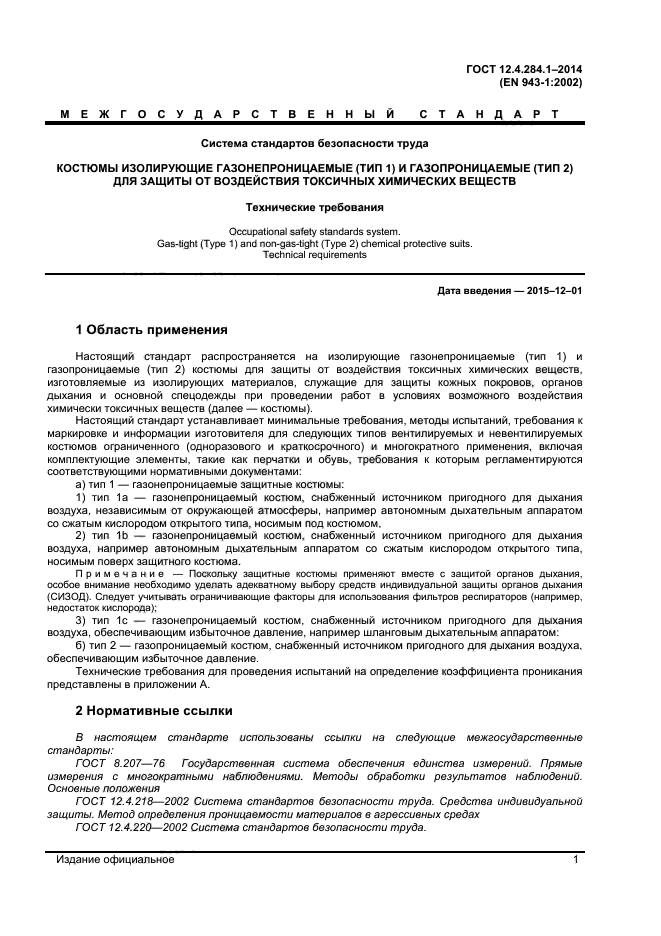 | Обозначение: | ГОСТ 12.4.284.1-2014 |
