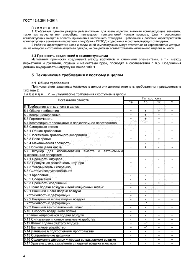 Настоящий стандарт устанавливает минимальные требования, методы испытаний, требования к маркировке и информации изготовителя для следующих типов вентилируемых и невентилируемых костюмов ограниченного (одноразового и краткосрочного) и многократного применения, включая комплектующие элементы, такие как перчатки и обувь, требования к которым регламентируются соответствующими нормативными документами: а) тип 1 - газонепроницаемые защитные костюмы: 1) тип 1а - газонепроницаемый костюм, снабженный источником пригодного для дыхания воздуха, независимым от окружающей атмосферы, например автономным дыхательным аппаратом со сжатым кислородом открытого типа, носимым под костюмом, 2) тип 1b - газонепроницаемый костюм, снабженный источником пригодного для дыхания воздуха, например автономным дыхательным аппаратом со сжатым кислородом открытого типа, носимым поверх защитного костюма. 3) тип 1с - газонепроницаемый костюм, снабженный источником пригодного для дыхания возду-ха, обеспечивающим избыточное давление, например шланговым дыхательным аппаратом: б) тип 2 - газопроницаемый костюм, снабженный источником пригодного для дыхания воздуха, обеспечивающим избыточное давление |