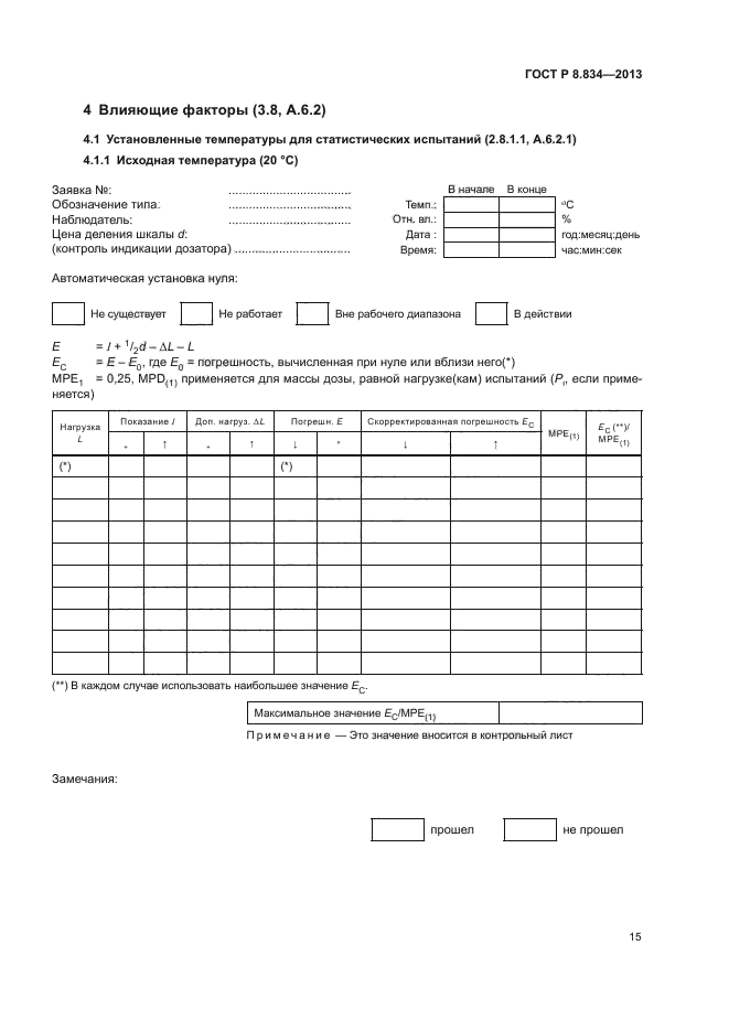 | Область и условия применения: | Настоящий стандарт распространяется на автоматические весовые дозаторы дискретного действия (далее - дозаторы) по OIML R 61-1:2004 (E) «Automatic gravimetric filling instruments. Part 1. Metrological and technical requirements - Tests» (Автоматические весовые дозаторы дискретного действия. Часть 1. Метрологические и технические требования. Испытания) (далее - R 61-1) и устанавливает форму протокола испытаний дозаторов для целей утверждения типа |