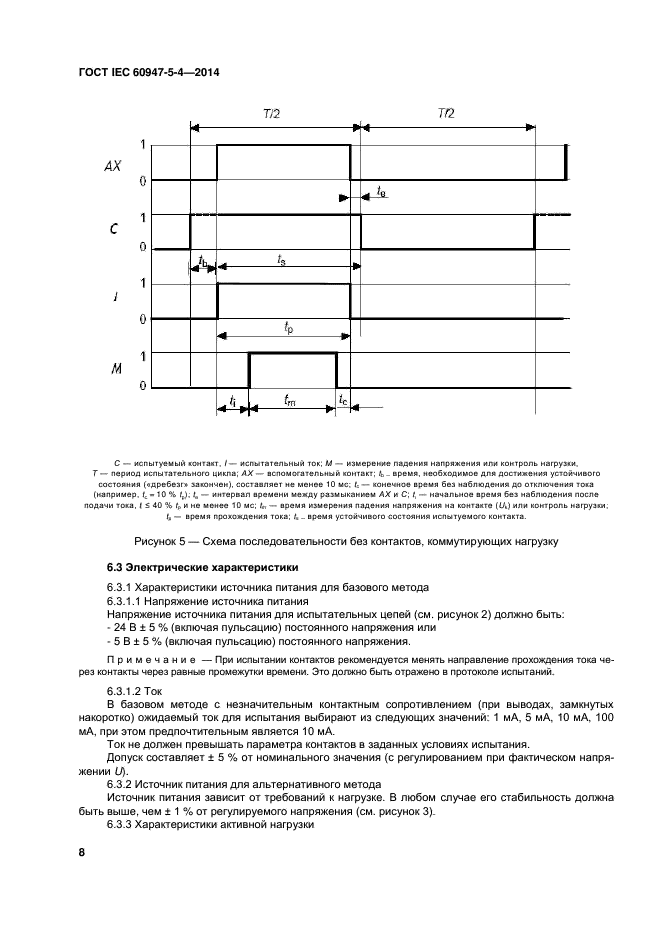 Настоящий стандарт рассматривает две области номинальных напряжений: а) более (включительно) 10 В (обычно 24 В) для контактов, коммутирующих нагрузки и подверженные электрической эрозии, например вводы программируемых контроллеров; b) ниже 10 В (обычно 5 В) для контактов, коммутирующих цепи управления с незначительной электрической эрозией, например электронных цепей. Настоящий стандарт не распространяется на контакты, применяемые в области контроля сверхнизких токов, например датчики или системы термопар. |
