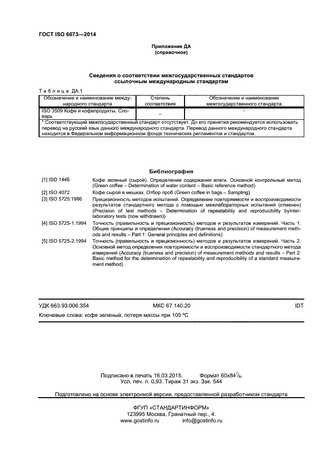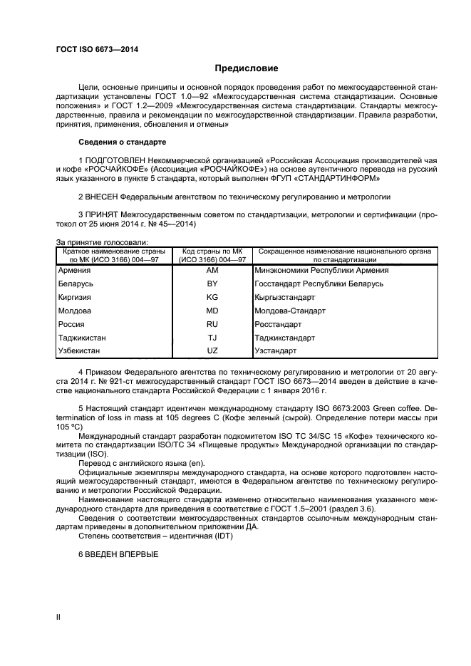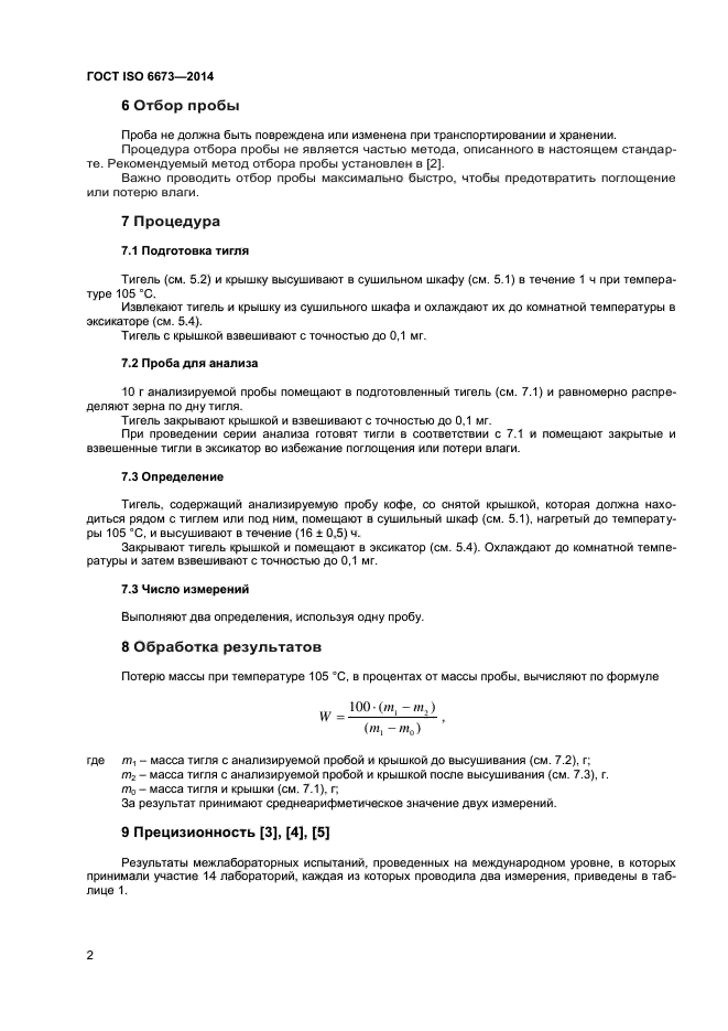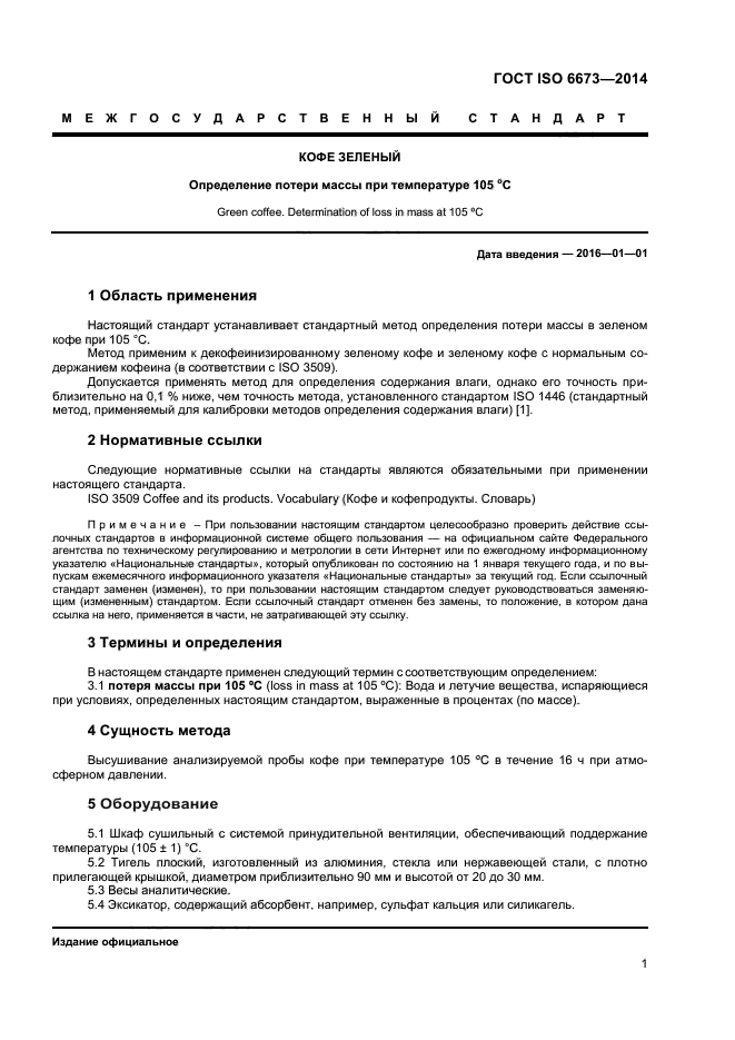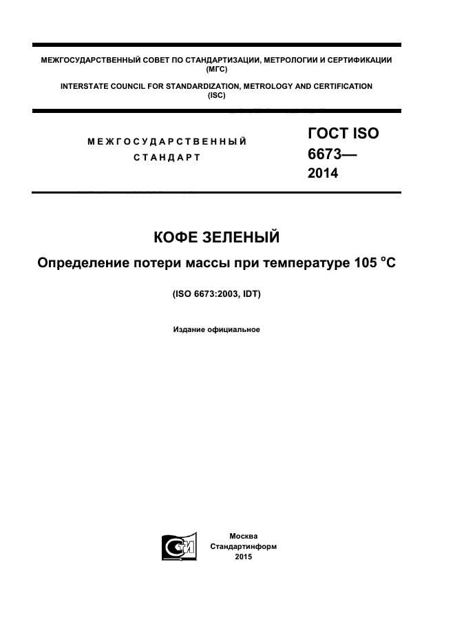 | Область и условия применения: | Настоящий стандарт устанавливает стандартный метод определения потери массы в зеленом кофе при 105 °С.