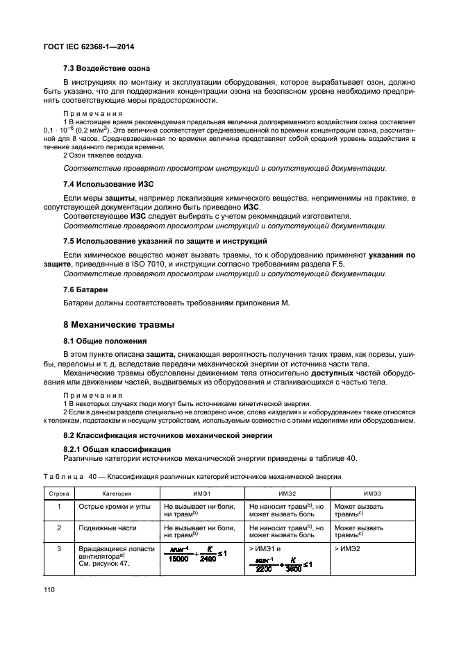 | Область и условия применения: | Данная часть стандарта IEC 62368 посвящена безопасности электронной аудио/видеоаппаратуры и оборудования информационных и коммуникационных технологий, а также техники для решения коммерческих задач и офисной техники с номинальным напряжением, не превышающим 600 В. В настоящий стандарт не входят требования к производительности или функциональным характеристикам оборудования.