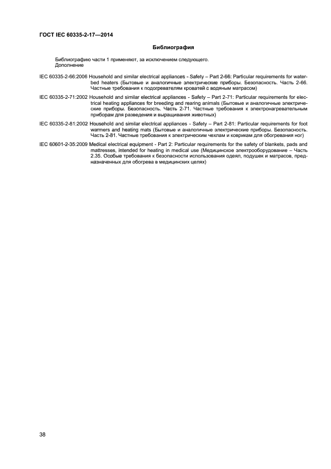 | Название рус.: | Бытовые и аналогичные электрические приборы. Безопасность. Часть 2-17. Частные требования к одеялам, подушкам, одежде и аналогичным гибким нагревательным приборам |