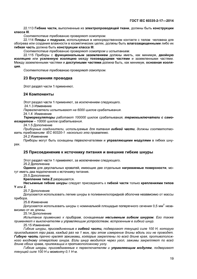 | Область и условия применения: | Настоящий стандарт устанавливает требования безопасности электрических одеял, подушек, одежды и других гибких приборов, предназначенных для обогрева кровати или человеческого тела, бытового и аналогичного назначения номинальным напряжением не более 250 В.