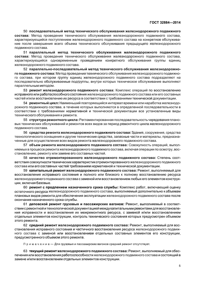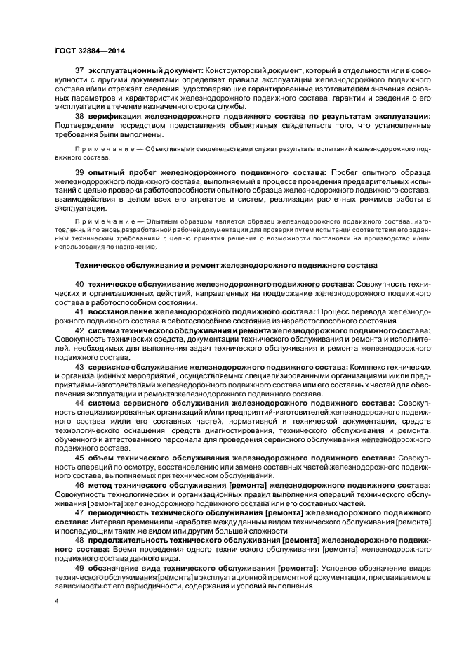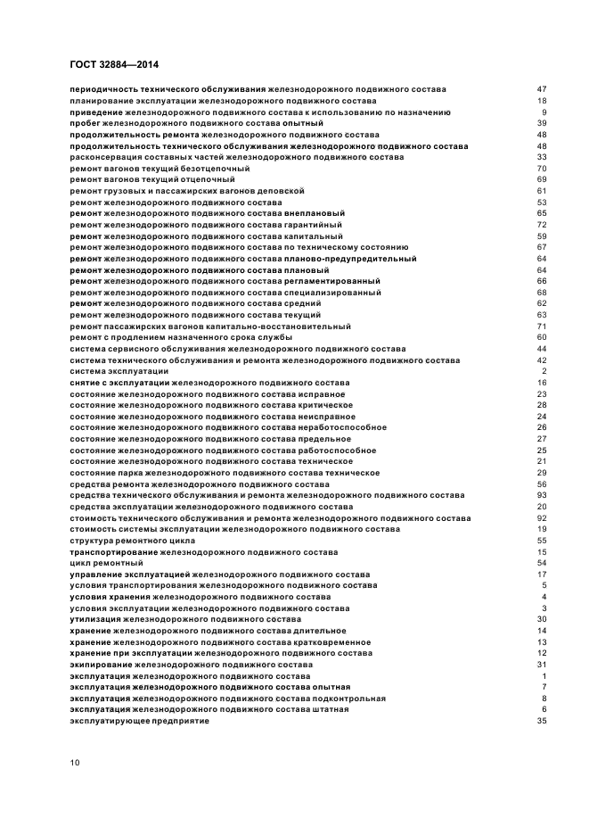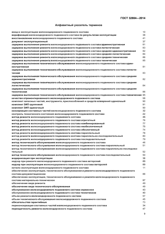 Термины, установленные в настоящем стандарте, рекомендуются для применения во всех видах документации и литературы в области эксплуатации, технического обслуживания и ремонта железнодорожного подвижного состава, входящих в сферу действия работ по стандартизации и/или использующих результаты этих работ |