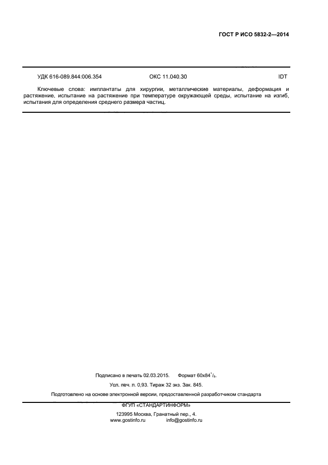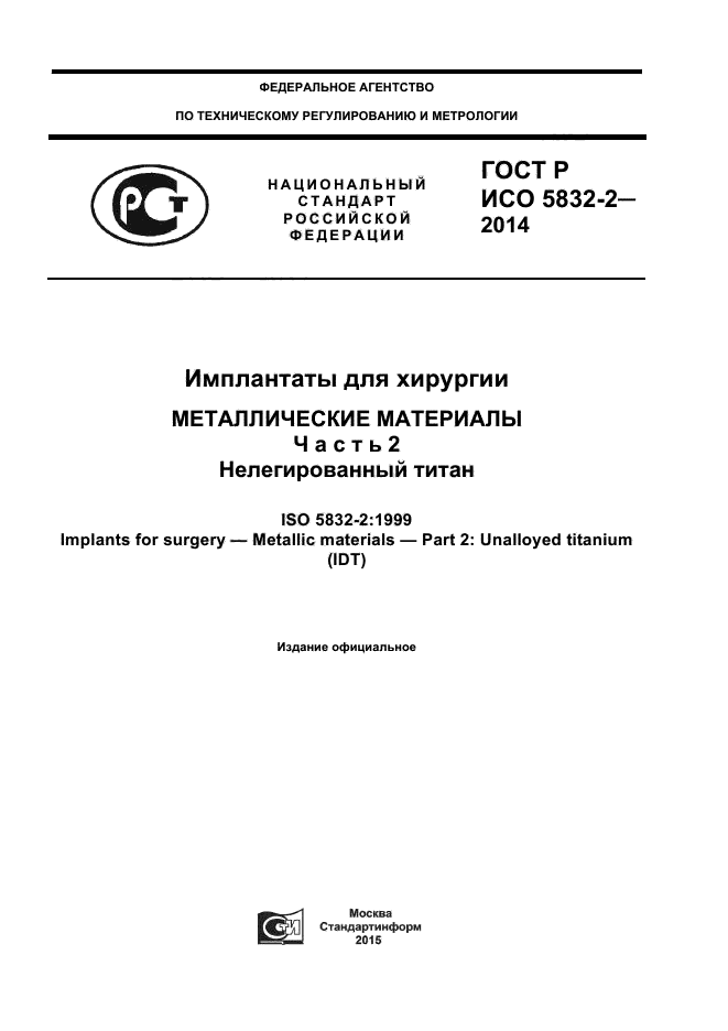 | Обозначение: | ГОСТ Р ИСО 5832-2-2014 |