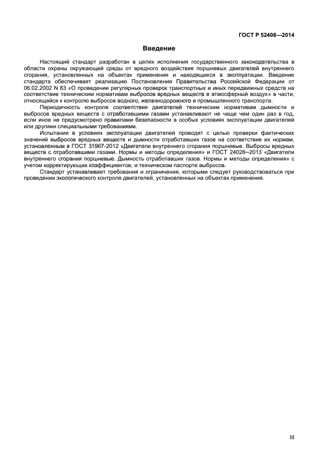 Настоящий стандарт распространяется на поршневые двигатели внутреннего сгорания судового, тепловозного и промышленного назначения, находящиеся на объектах применения, и устанавливает процедуры контроля соответствия двигателей в условиях эксплуатации нормам выбросов вредных веществ и дымности отработавших газов.