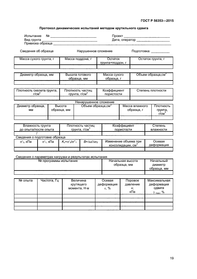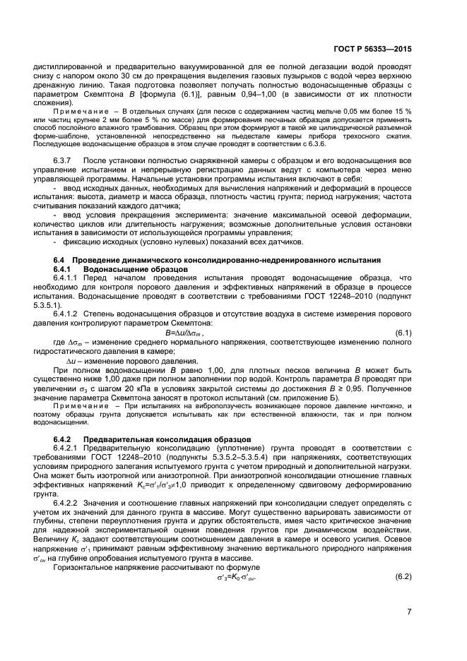 | Область и условия применения: | Настоящий стандарт устанавливает методы лабораторного определения динамических свойств дисперсных грунтов (за исключением крупнообломочных) при инженерно-геологических изысканиях для строительства |