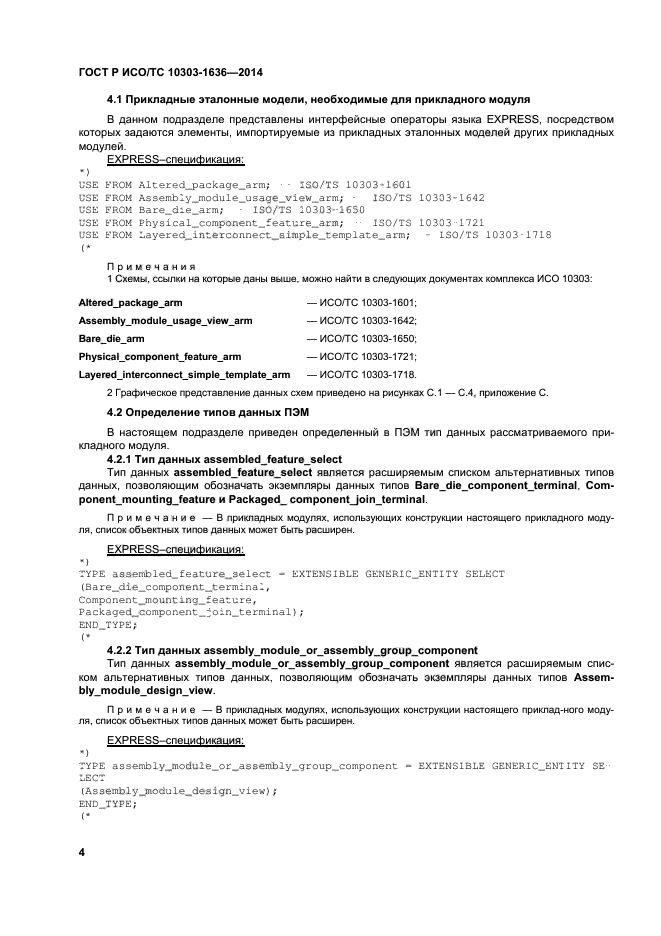 - положения, входящие в область применения прикладного модуля ИСО/ТС 10303-1642 Assembly module usage view;