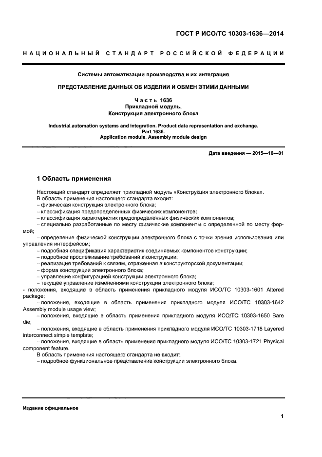 | Название рус.: | Системы автоматизации производства и их интеграция. Представление данных об изделии и обмен этими данными. Часть 1636. Прикладной модуль. Конструкция электронного блока |