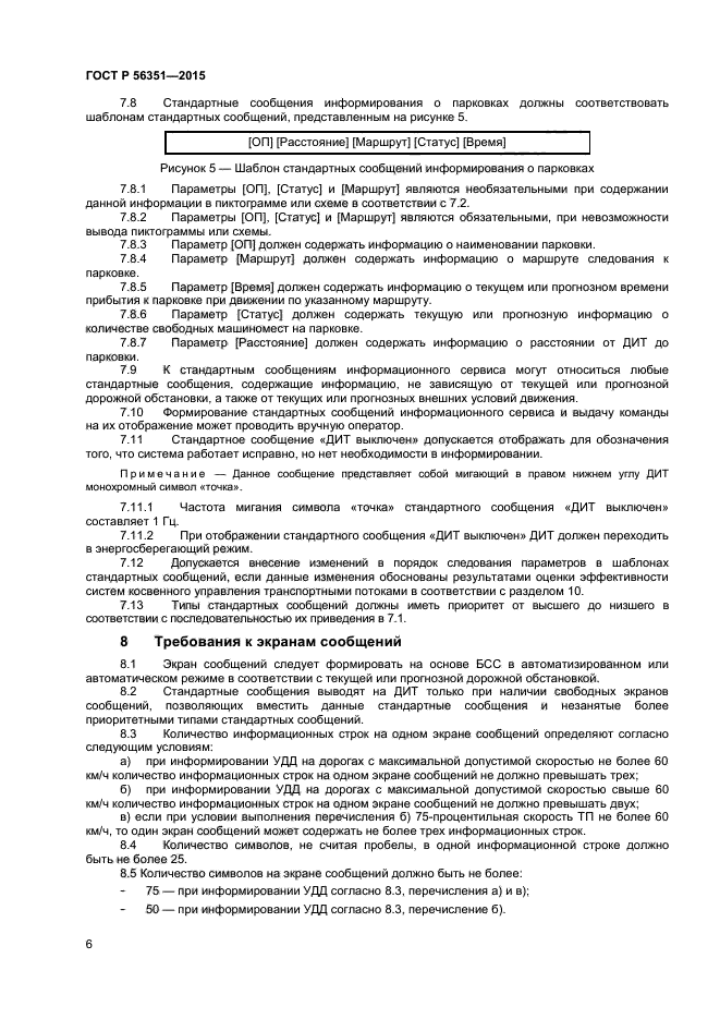 | Название рус.: | Интеллектуальные транспортные системы. Косвенное управление транспортными потоками. Требования к технологии информирования участников дорожного движения посредством динамических информационных табло |