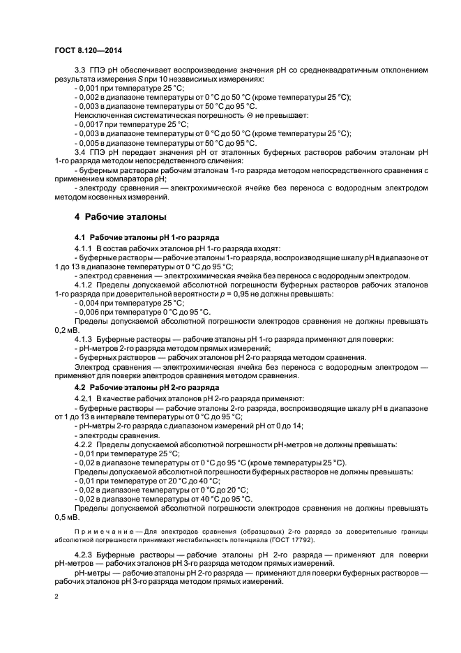 Настоящий стандарт распространяется на государственную поверочную схему для средств измерений pH в диапазоне от 0 до 14 в интервале температуры от 0°С до 95°С (см. рисунок А.1 приложения А) и устанавливает порядок передачи значений pH от государственного первичного эталона показателя pH активности ионов водорода в водных растворах с помощью рабочих эталонов рабочим средствам измерений с указанием погрешности и методов передачи значений pH