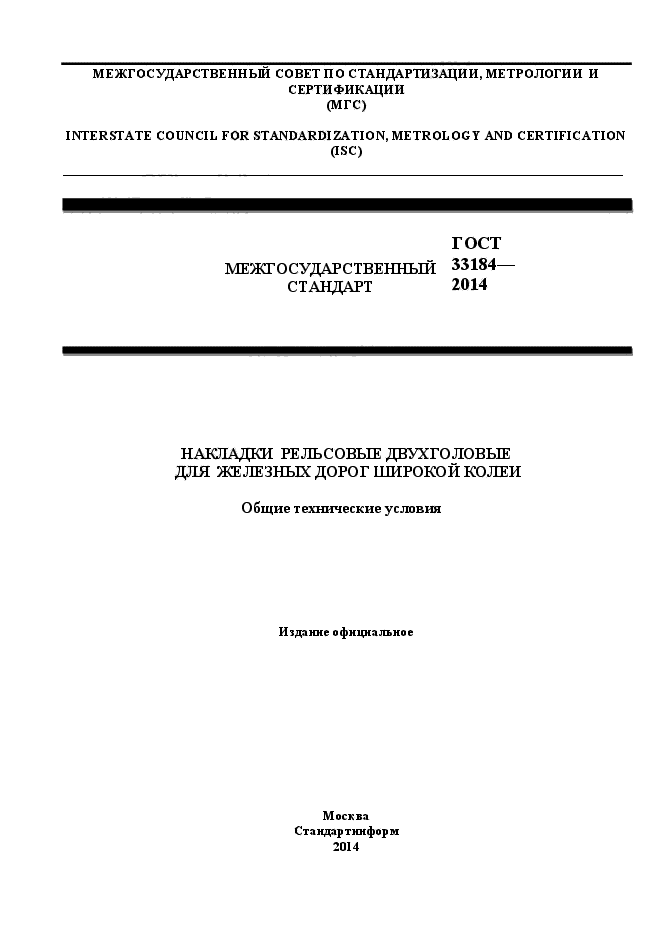 | Название рус.: | Накладки рельсовые двухголовые для железных дорог широкой колеи. Технические условия |