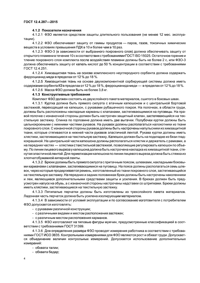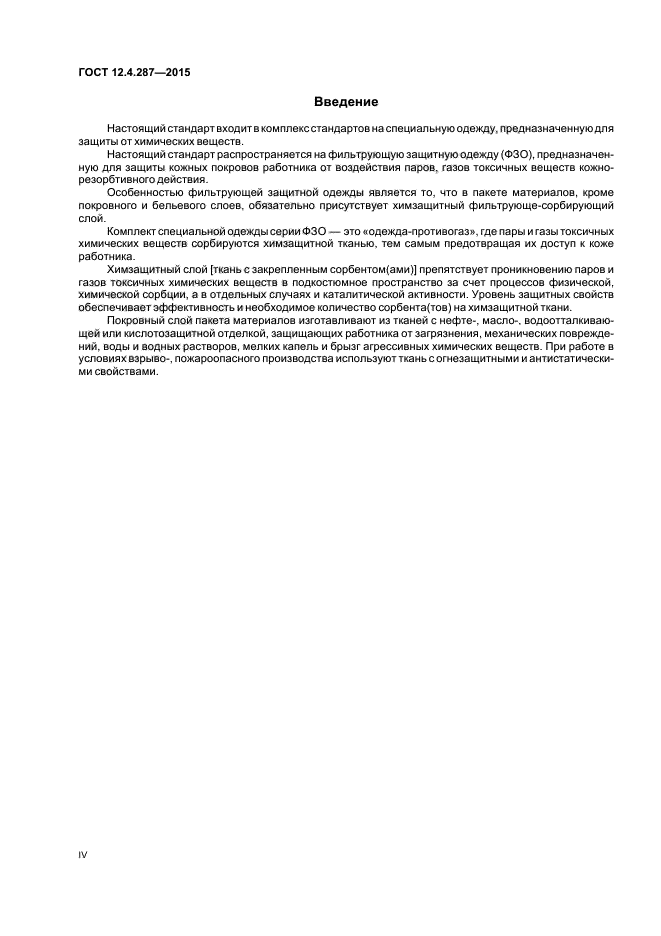 Настоящий стандарт не распространяется на фильтрующую защитную одежду, изготовленную с использованием химзащитной фильтрующе-сорбирующей ткани на основе углеродных сорбентов