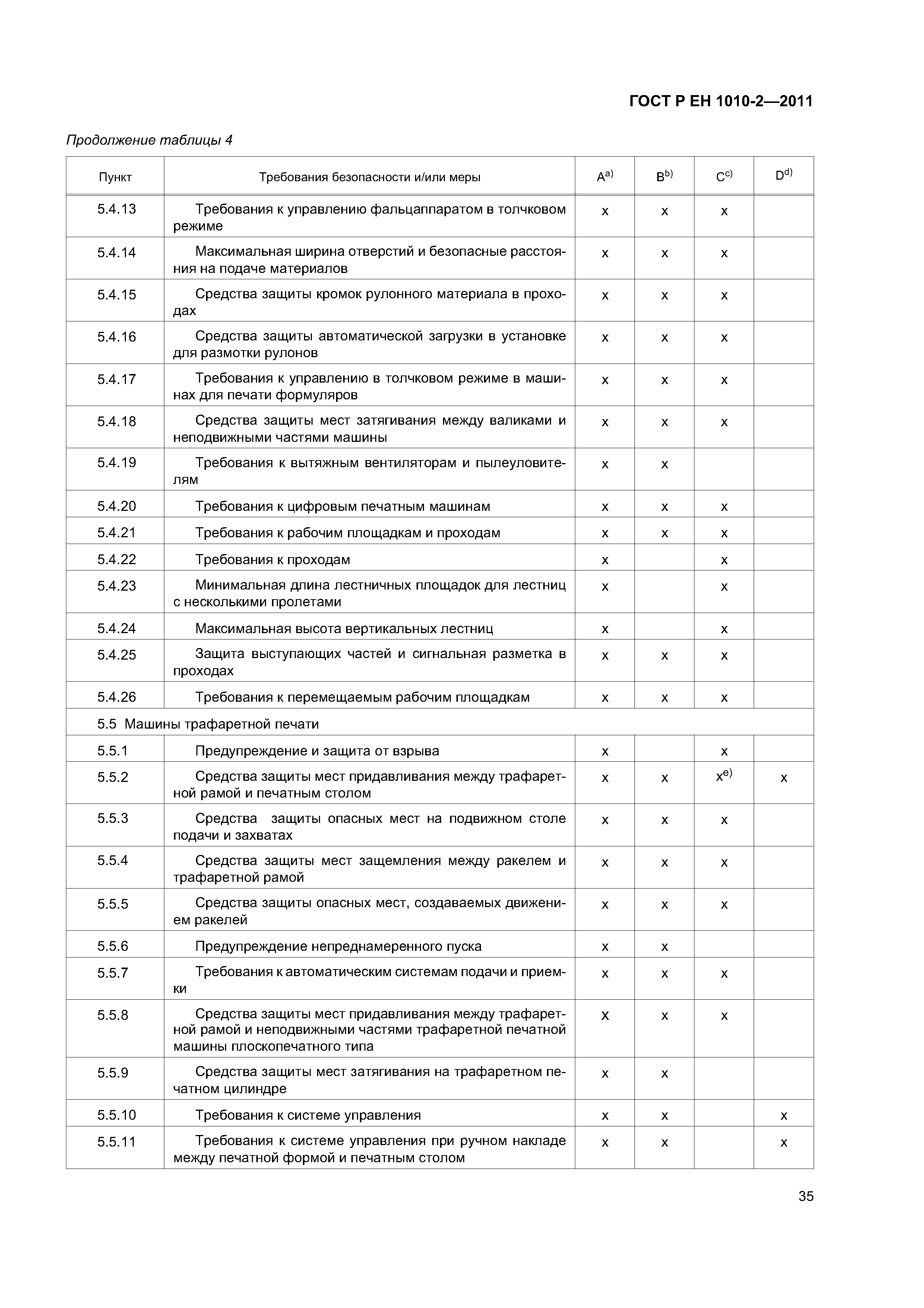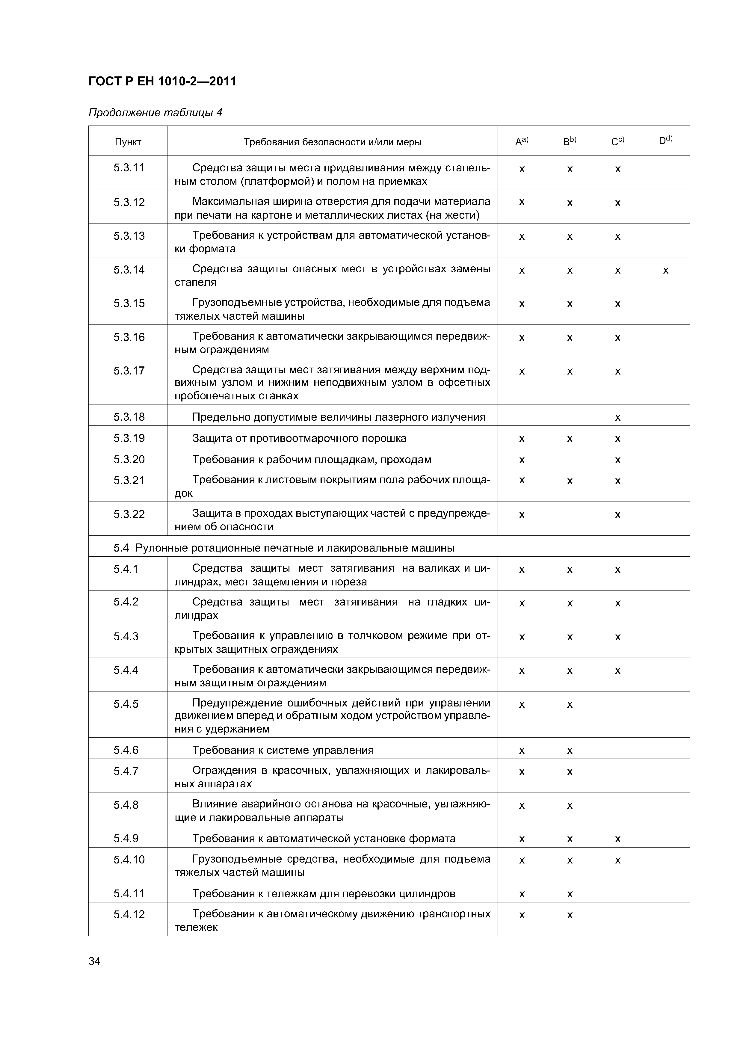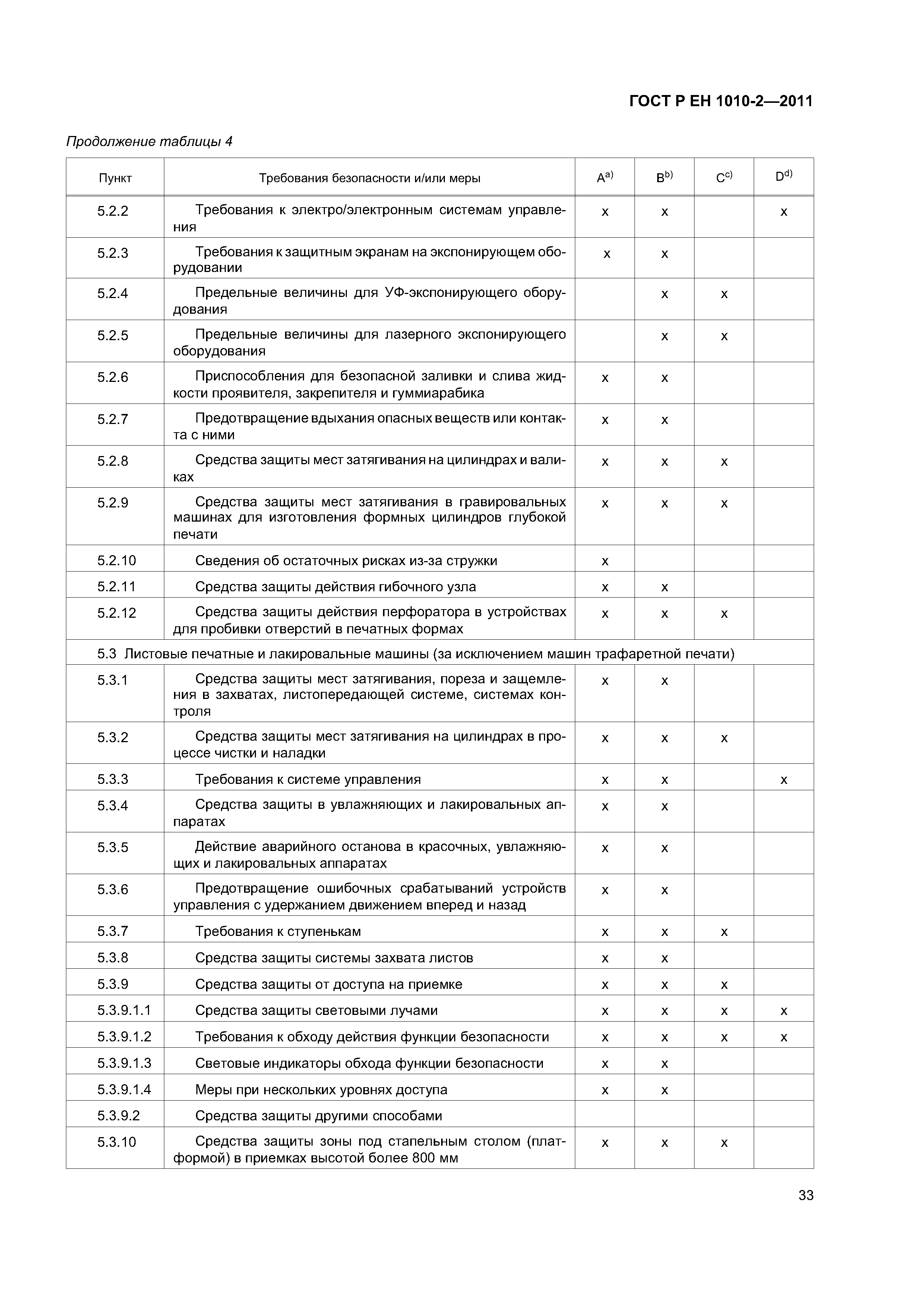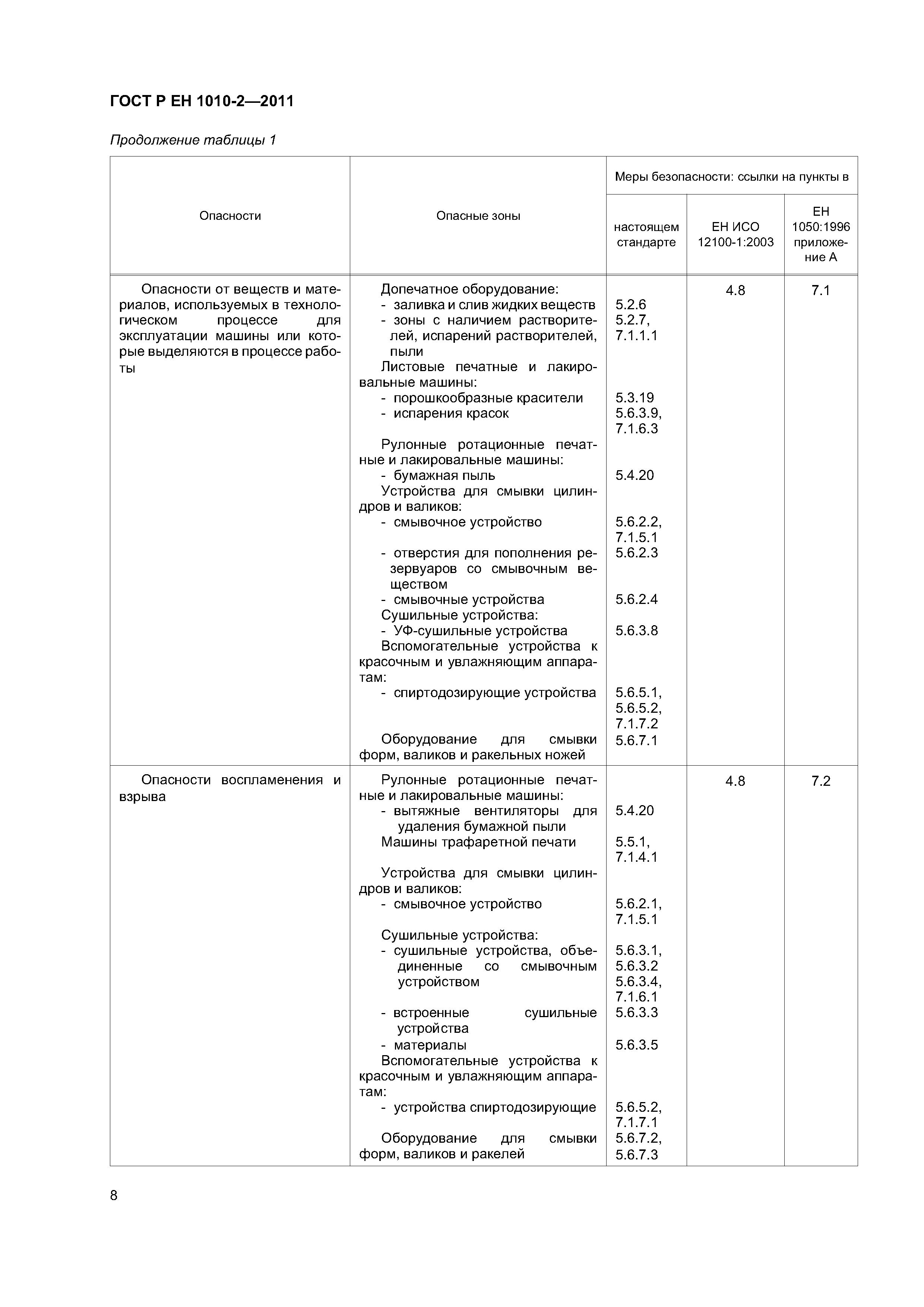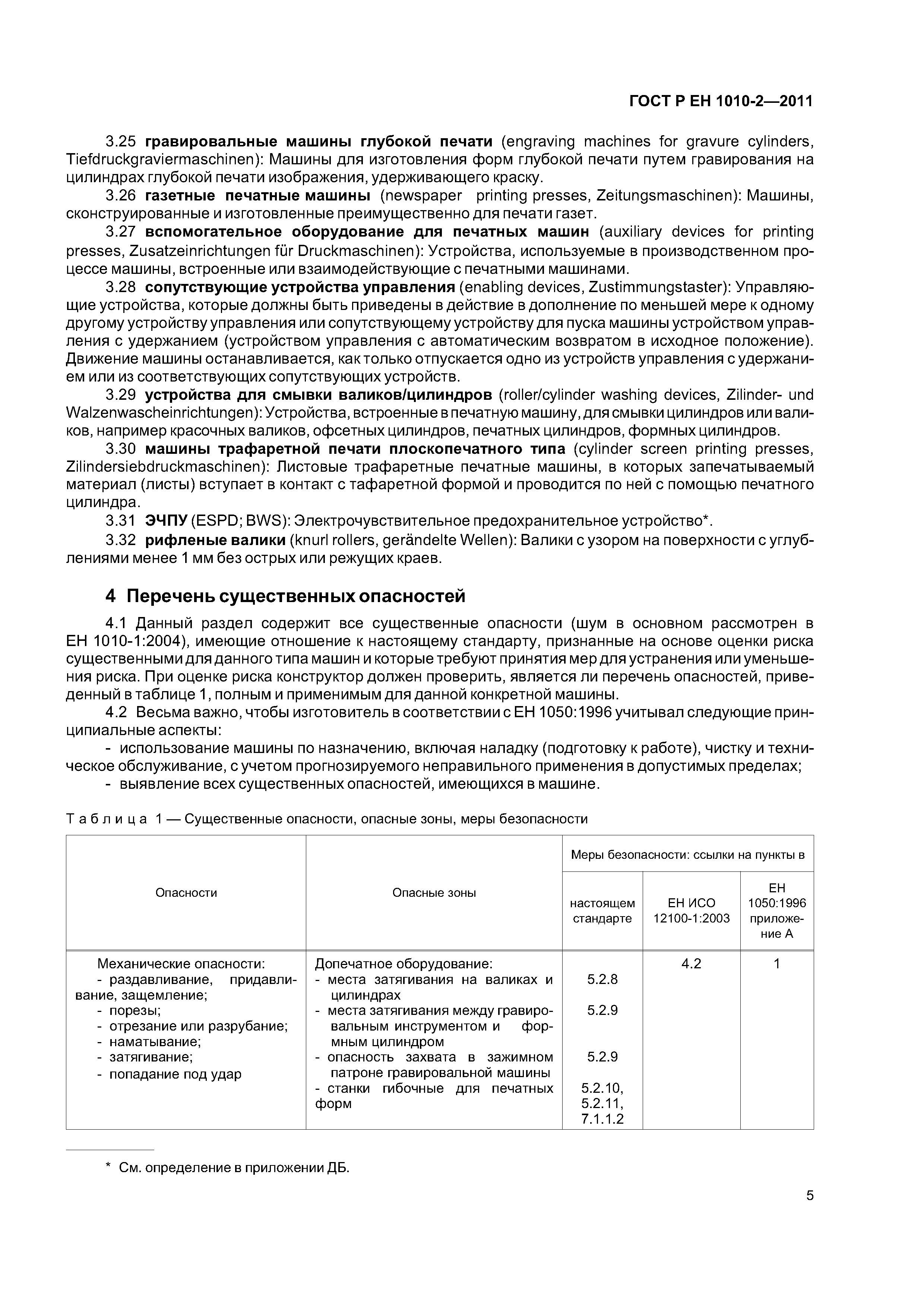 - допечатное оборудование (машины и оборудование для изготовления оригинальных и печатных форм), включая: - экспонирующее оборудование для изготовления фотоформ и печатных форм; - оборудование для проявления фотоформ и печатных форм; - устройства для смывки печатных форм; - гибочные станки для печатных форм; - станки для пробивки отверстий в печатных формах; - устройства для обрезки пленок и печатных форм; - оборудование для изготовления форм глубокой печати; - сканирующие устройства (устройства для считывания изображений); - печатные и лакировальные машины, включая: - пробопечатные станки; - листовые печатные и лакировальные машины, включая цифровые печатные; - рулонные ротационные печатные и лакировальные машины, включая цифровые печатные машины; - машины трафаретной печати; - вспомогательное оборудование, включая; - устройства для смывки цилиндров и валиков; - сушильные устройства; - порошковые противоотмарочные аппараты; - вспомогательные устройства к красочным и увлажняющим аппаратам; - автоматические устройства для закрепления печатной формы; - оборудование для смывки форм, валиков, ракельных ножей; - устройства для переворачивания стоп; - устройства для измерения и управления. Настоящий стандарт следует применять совместно с ГОСТ ЕН 1010-1. Настоящий стандарт не может быть применен к устройствам для чистки высокого давления и машинам трафаретной печати для текстильных материалов. Настоящий стандарт не может быть применен к машинам и оборудованию, которые изготовлены до даты введения настоящего стандарта в действие |