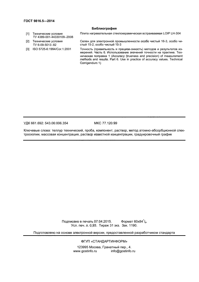 | Область и условия применения: | Настоящий стандарт устанавливает методику измерений массовой доли меди, железа, свинца, селена, серебра в техническом теллуре методом атомно-абсорбционной спектроскопии |