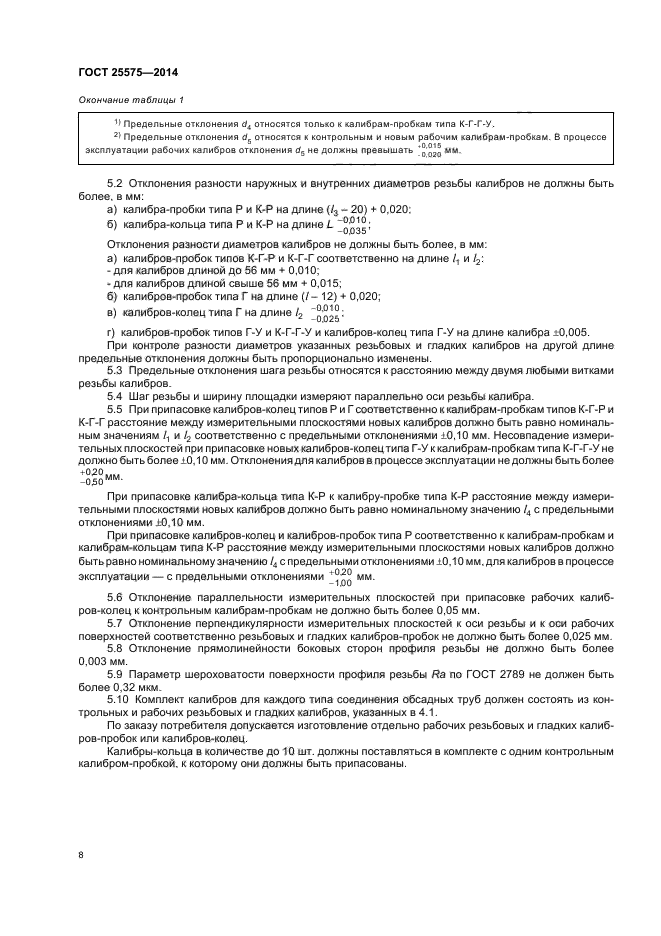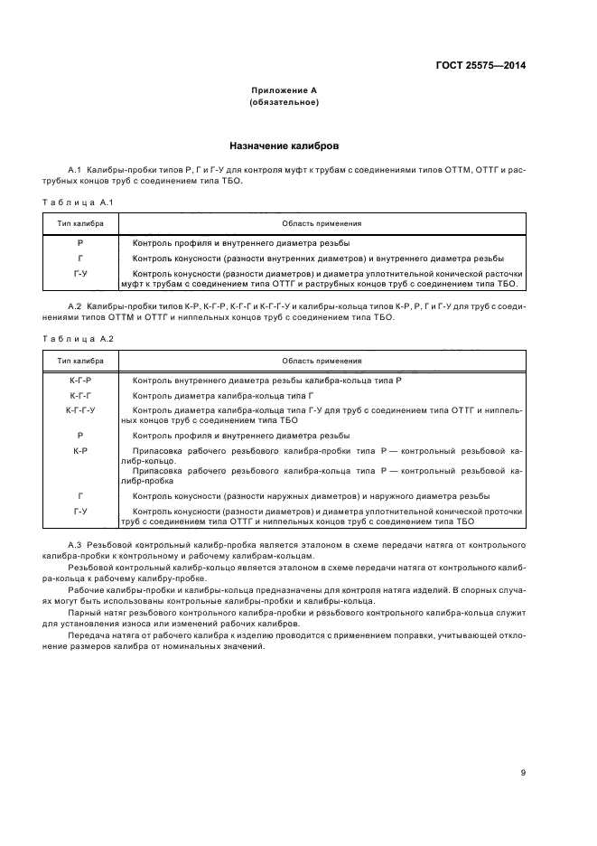 | Область и условия применения: | Настоящий стандарт распространяется на контрольные и рабочие конические резьбовые и гладкие калибры, предназначенные для контроля трапецеидальной резьбы и уплотнительных поверхностей резьбовых соединений обсадных труб и муфт к ним типов ОТТМ, ОТТГ и труб типа ТБО |