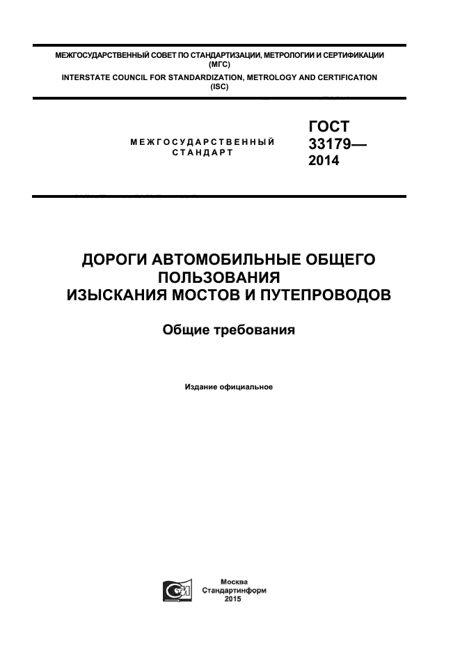 | Область и условия применения: | Настоящий стандарт устанавливает общие требования к изысканиям мостов, путепроводов и эстакад, а также мостовых переходов на автомобильных дорогах общего пользования |