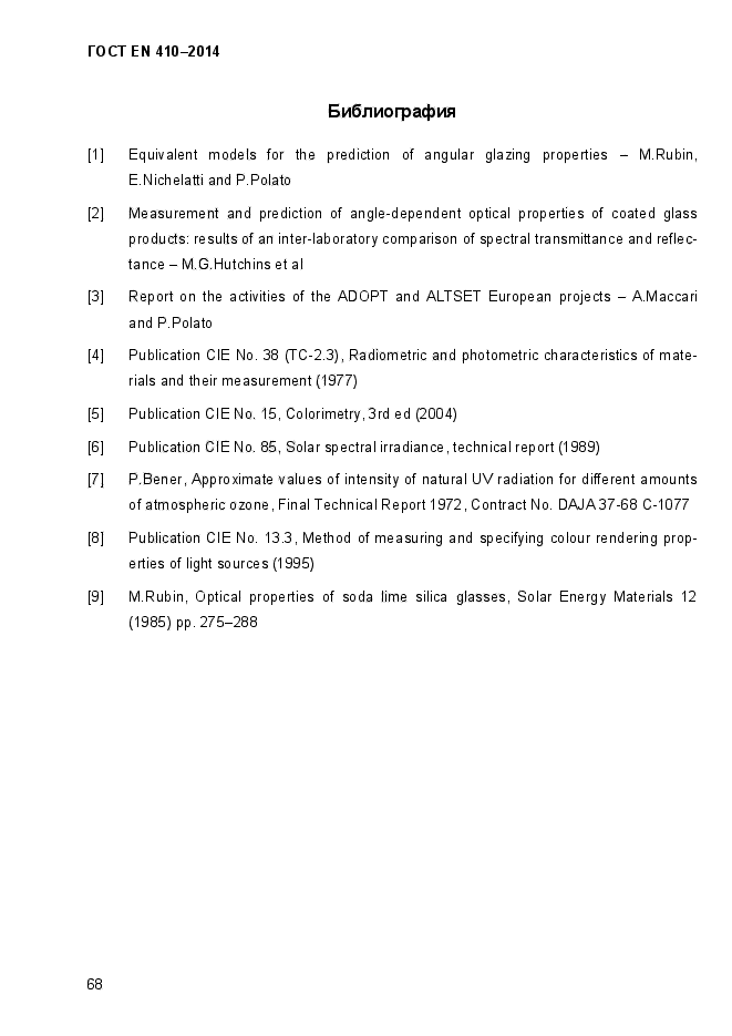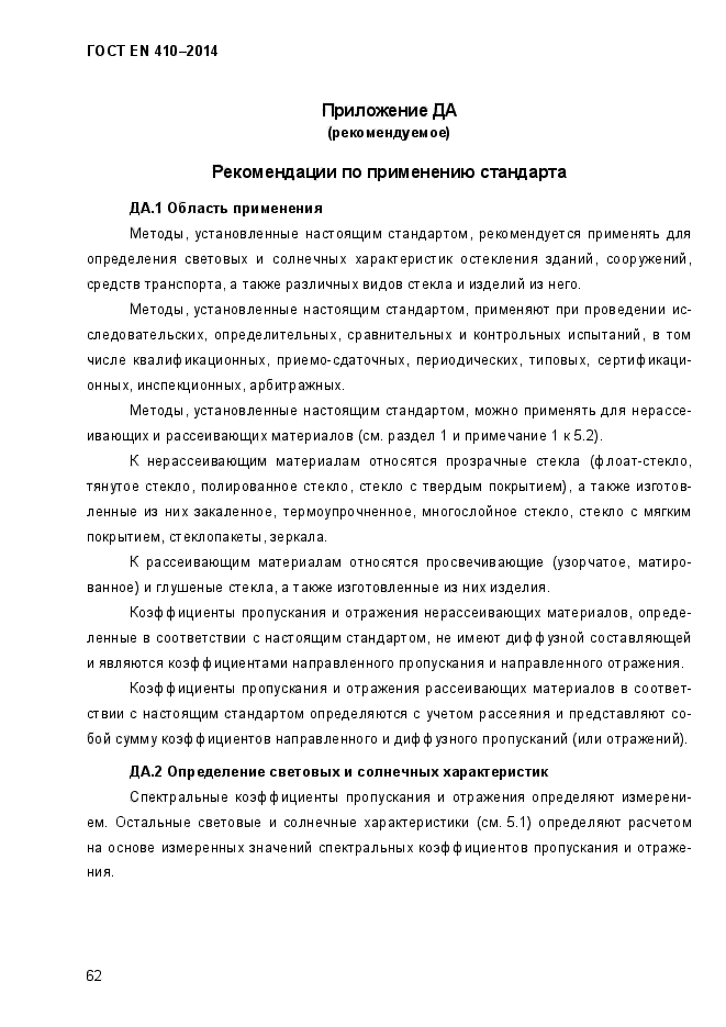 | Область и условия применения: | Настоящий стандарт устанавливает методы определения световых и солнечных характеристик остекления зданий. Эти характеристики могут использоваться для расчетов уровня освещенности, обогрева и охлаждения помещений и сравнения различных типов остекления.