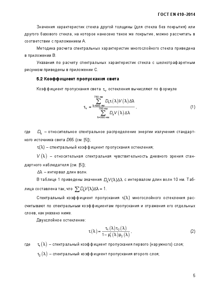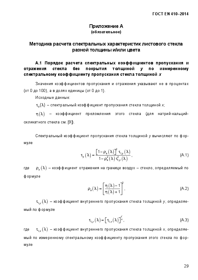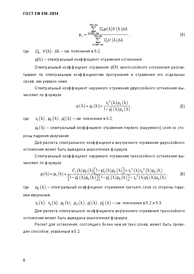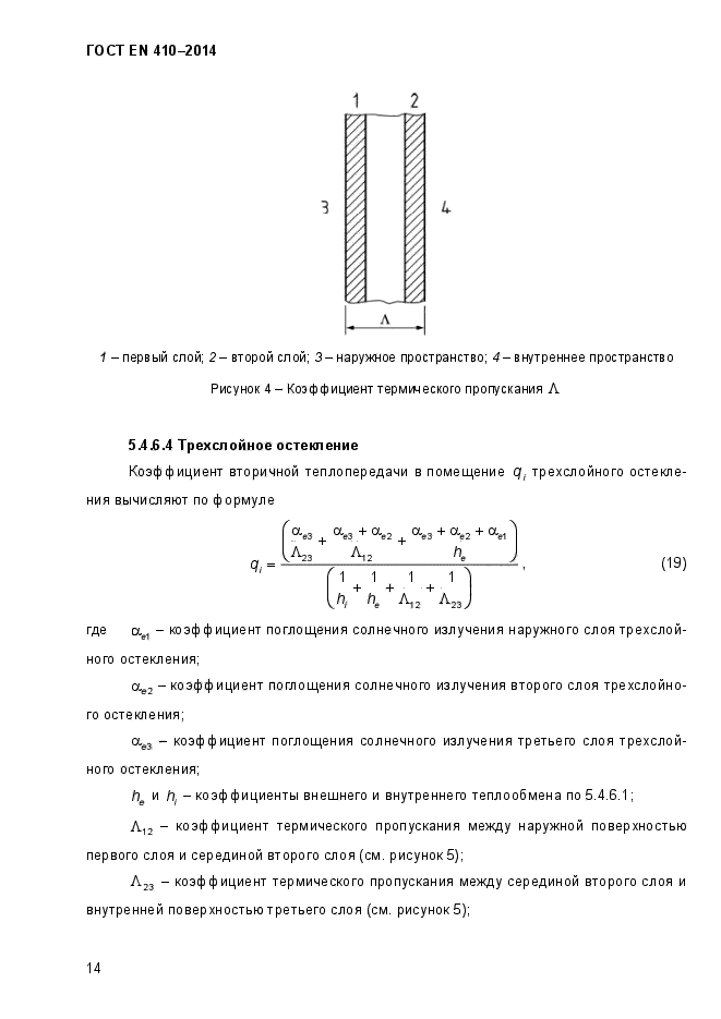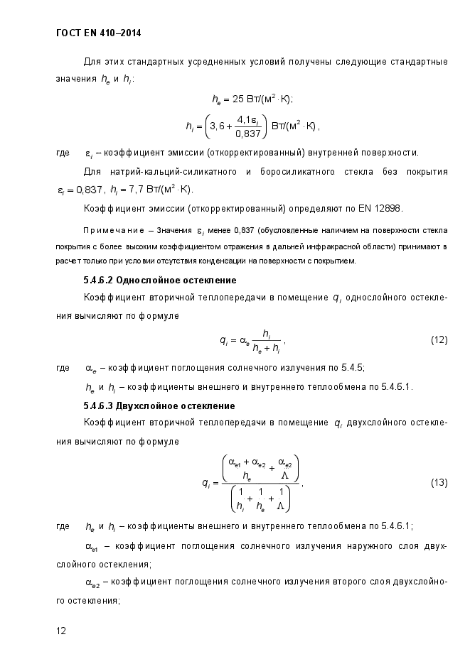 Настоящий стандарт распространяется на обычное и солнцезащитное (поглощающее или отражающее солнечное излучение) остекление, применяемое для вертикального или горизонтального остекления световых проемов. Приведены соответствующие формулы для однослойного, двухслойного и трехслойного остекления.