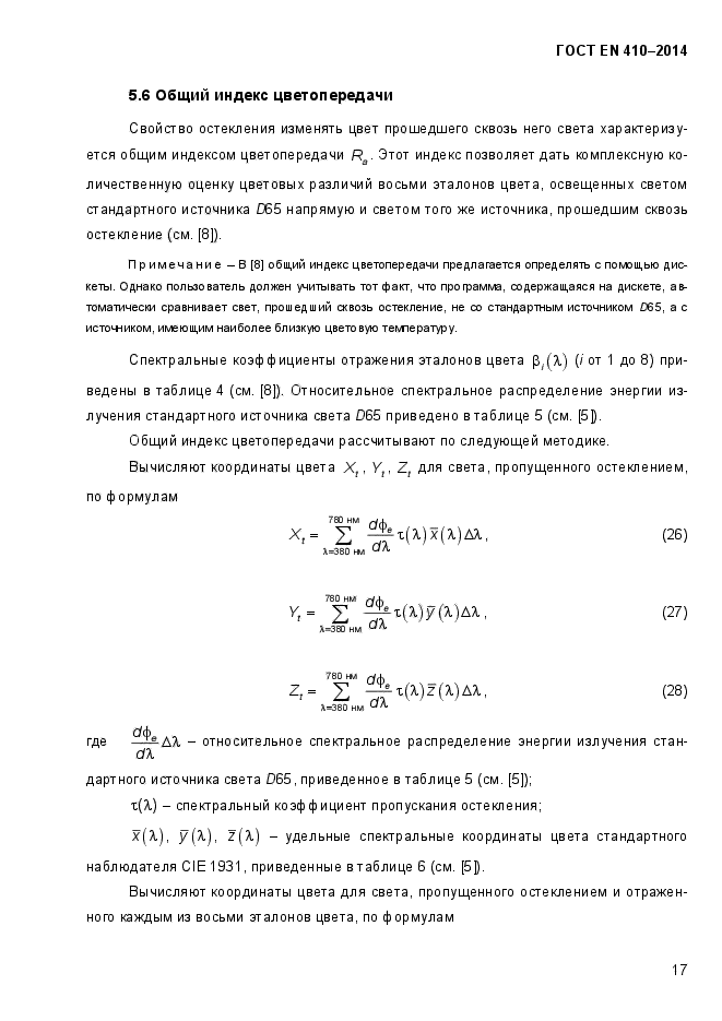 Настоящий стандарт распространяется на обычное и солнцезащитное (поглощающее или отражающее солнечное излучение) остекление, применяемое для вертикального или горизонтального остекления световых проемов. Приведены соответствующие формулы для однослойного, двухслойного и трехслойного остекления. Положения настоящего стандарта применимы ко всем прозрачным материалам, за исключением тех (например, некоторых полимерных материалов), которые характеризуются значительным пропусканием теплового излучения в диапазоне длин волн от 5 до 50 мкм |