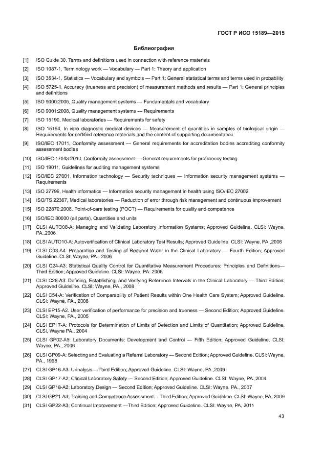 | Обозначение: | ГОСТ Р ИСО 15189-2015 |
