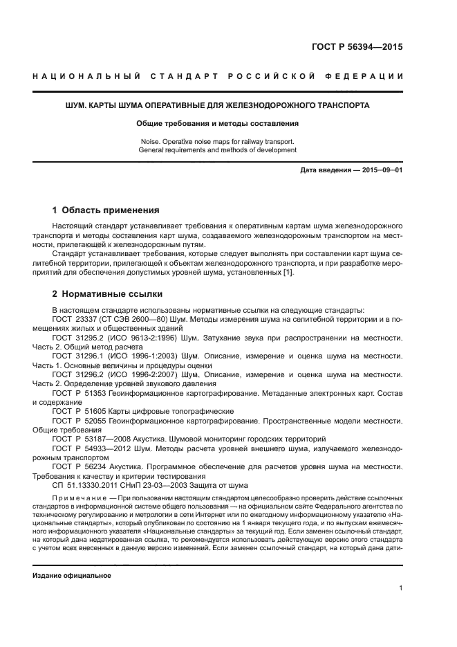 | Область и условия применения: | Настоящий стандарт устанавливает требования к оперативным картам шума железнодорожного транспорта и методы составления карт шума, создаваемого железнодорожным транспортом на местности, прилегающей к железнодорожным путям |