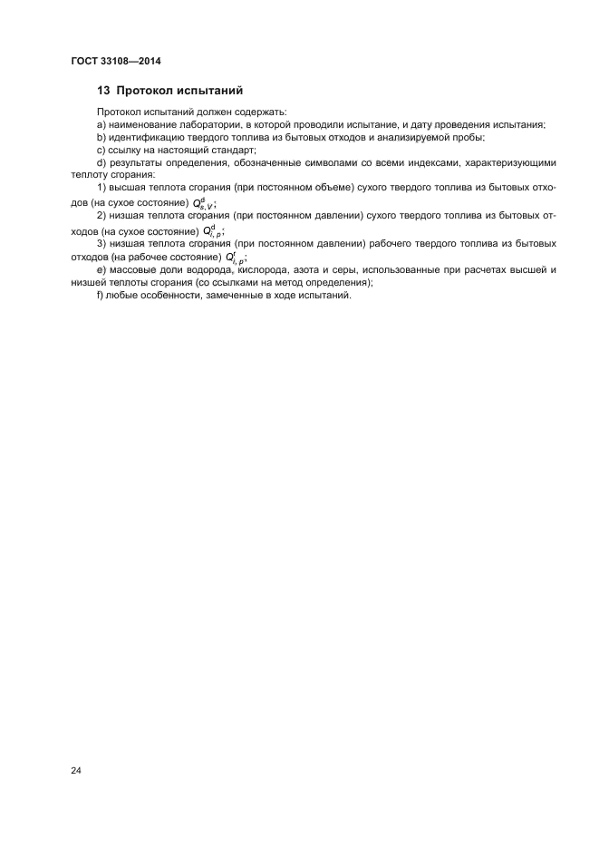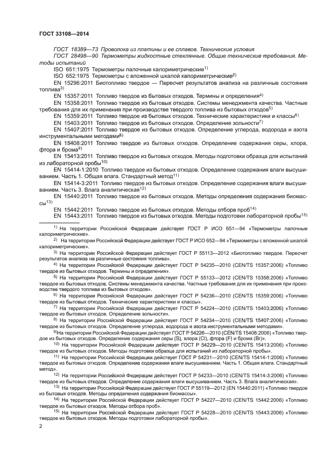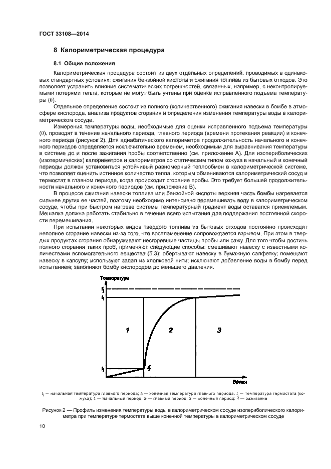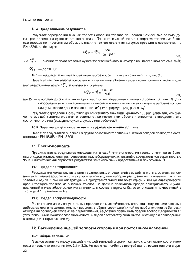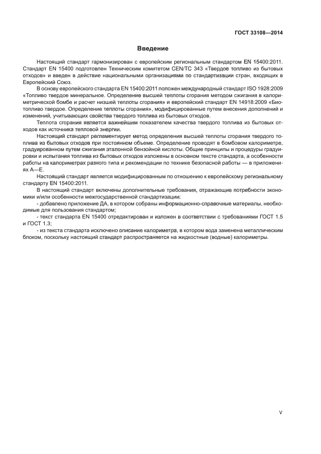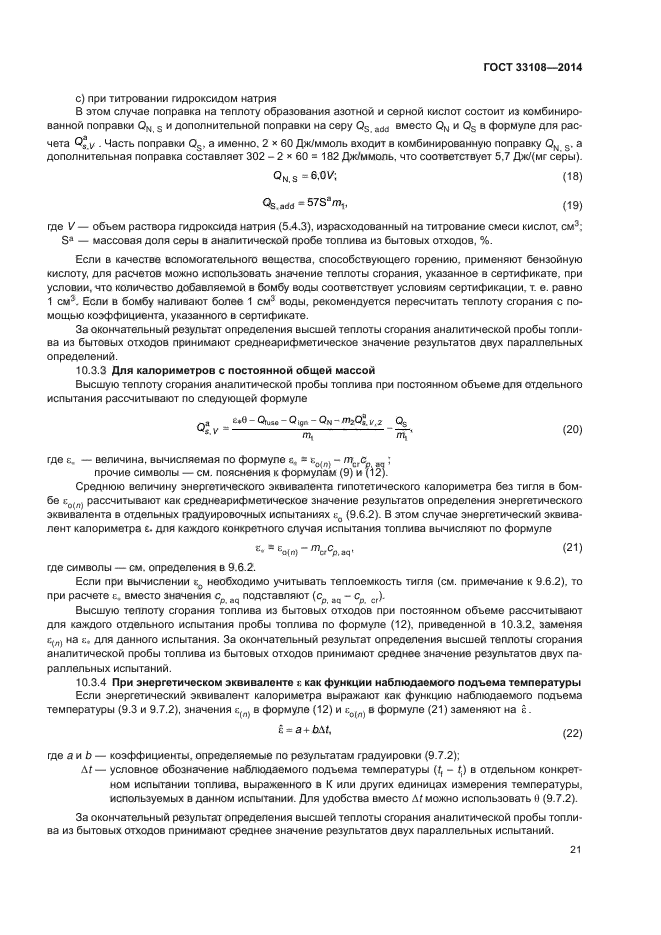 Настоящий стандарт распространяется на твердое топливо из бытовых отходов и устанавливает метод определения высшей теплоты сгорания при постоянном объеме и стандартной температуре 25 °C в калориметрической установке с использованием калориметрической бомбы и способ расчета низшей теплоты сгорания при постоянном давлении