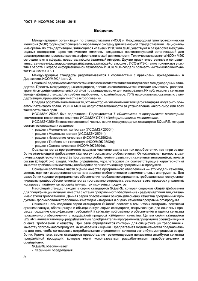 Настоящий стандарт входит в серию SQuaRE стандартов, которая содержит общие требования для спецификации и оценки качества систем и программного обеспечения и разъясняет связанные общие понятия. Данная серия обеспечивает основы для оценки качества программных продуктов и формирования требований к методам измерения и оценки качества программного продукта.