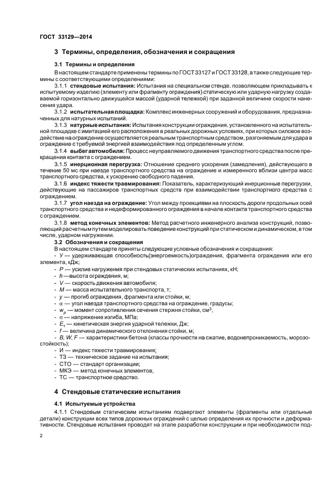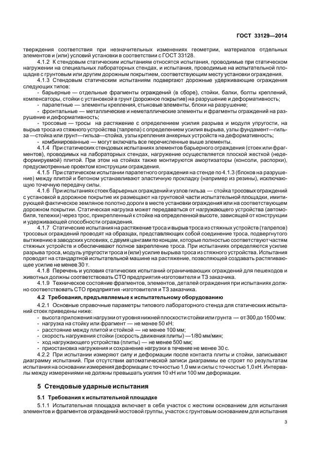 Настоящий стандарт устанавливает требования к методам испытаний и контроля дорожных ограждений, предназначенных для установки на автомобильных дорогах общего пользования и мостовых сооружениях. Предметом стандартизации являются методы испытаний и контроля дорожных удерживающих и ограничивающих ограждений для автомобилей, пешеходов, животных, определяются критерии приемки конструкций по результатам испытаний. Результаты испытаний и контроля дают возможность сделать выбор при установке ограждения на дорогах и устанавливать потребительские характеристики конструкций, которыми следует пользоваться при выборе конструкций для конкретных дорожных условий. Стандартом также определяются методы контроля и критерии оценки работы ограждений в эксплуатации
