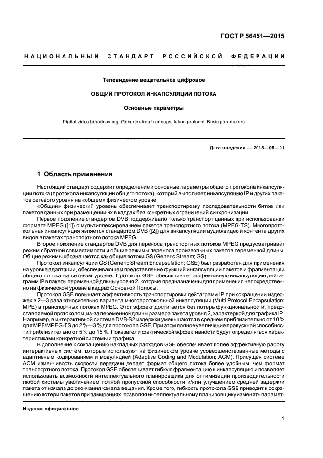 | Название рус.: | Телевидение вещательное цифровое. Общий протокол инкапсуляции потока. Основные параметры |