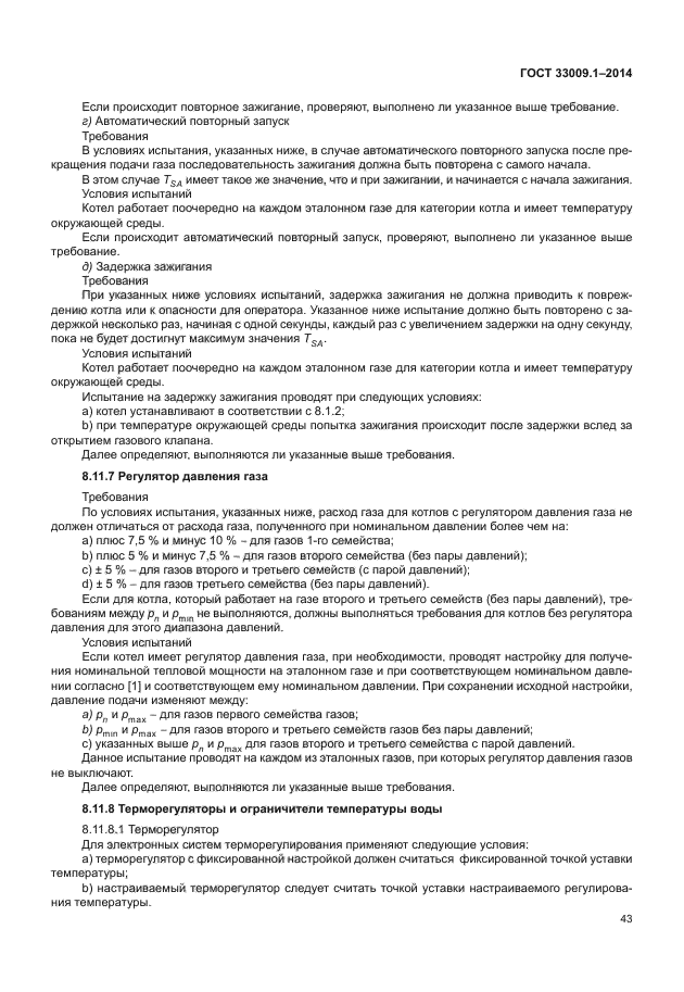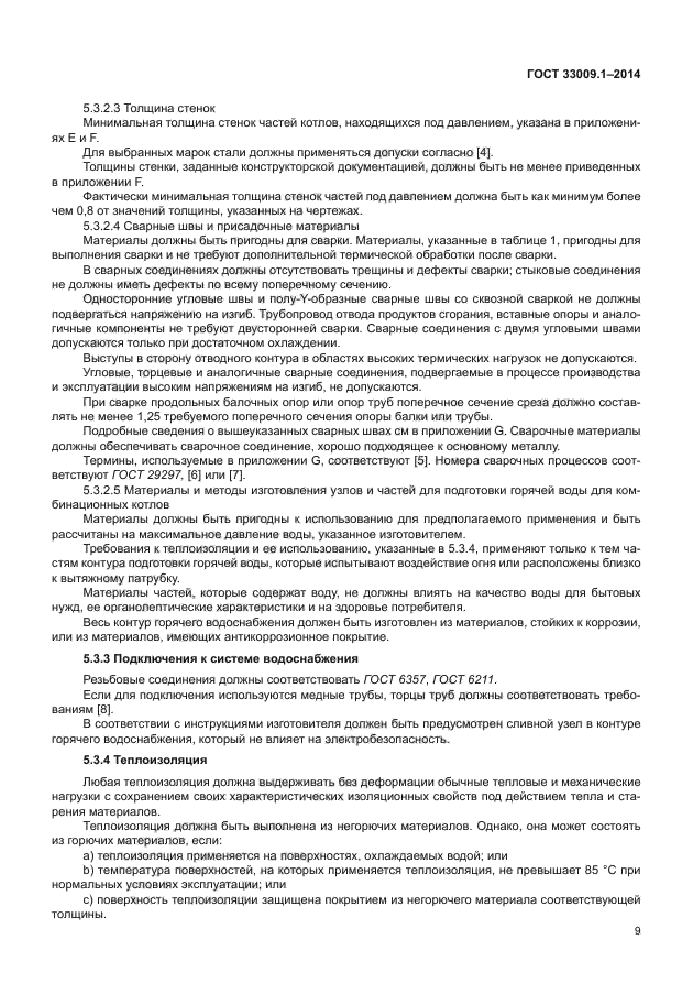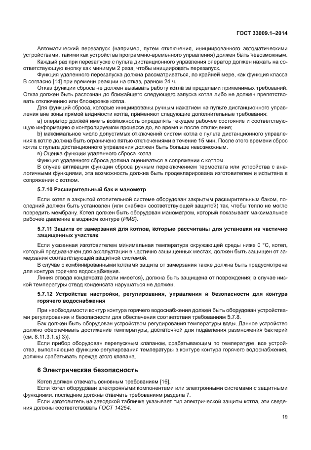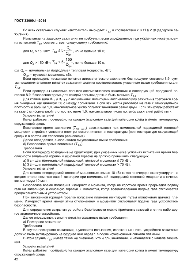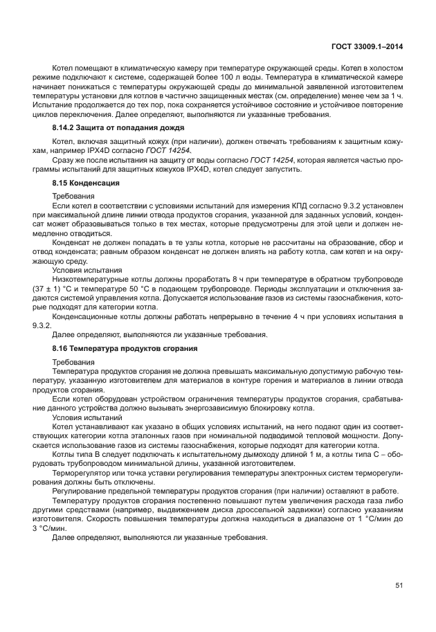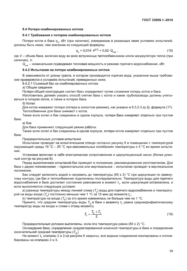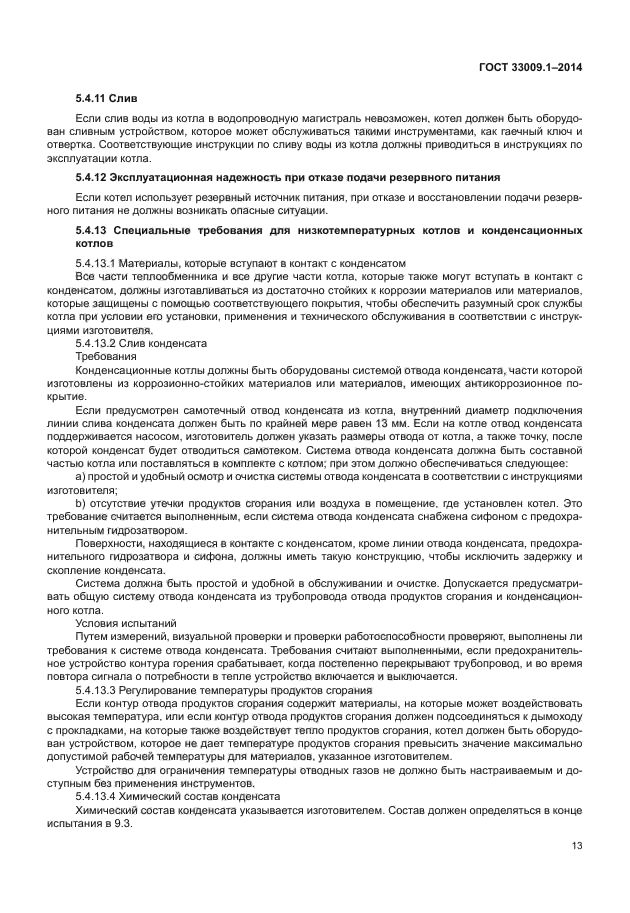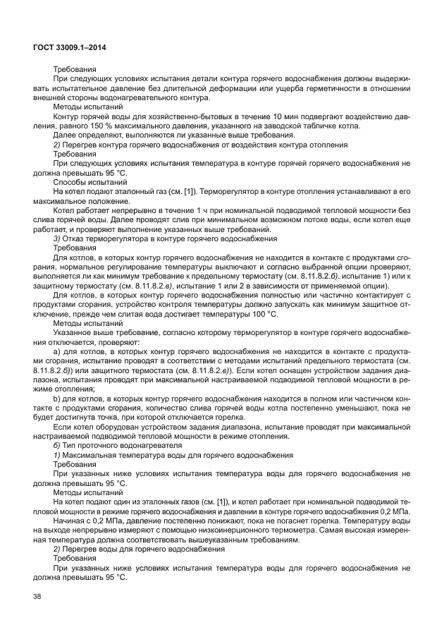 Настоящий стандарт распространяется на котлы типов B и C, рассчитанные на подключение к замкнутым или открытым системам отопления: a) которые работают с одним или несколькими горючими газами трех семейств при значениях давления, указанных в [1]; b) у которых в стандартных эксплуатационных условиях температура жидкого теплоносителя не превышает 105 °C; c) максимальное рабочее давление в водяном контуре не превышает 0,6 МПа; d) в определенных условиях возможно образование конденсата; e) которые определяются как конденсационные котлы, как низкотемпературные котлы или как стандартные котлы. Если не указано иное, котел рассматривается как стандартный котел; f) рассчитаны на установку в здании или в частично защищенном месте; g) рассчитаны на эксплуатацию с подготовкой горячей воды по проточной или накопительной схеме и поступают в открытую продажу в виде одного устройства |