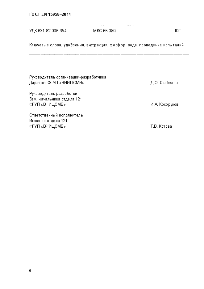 | Область и условия применения: | Настоящий стандарт устанавливает метод экстракции водорастворимого фосфора. Метод применим для всех удобрений, включая комбинированные, в которых определяют фосфор |