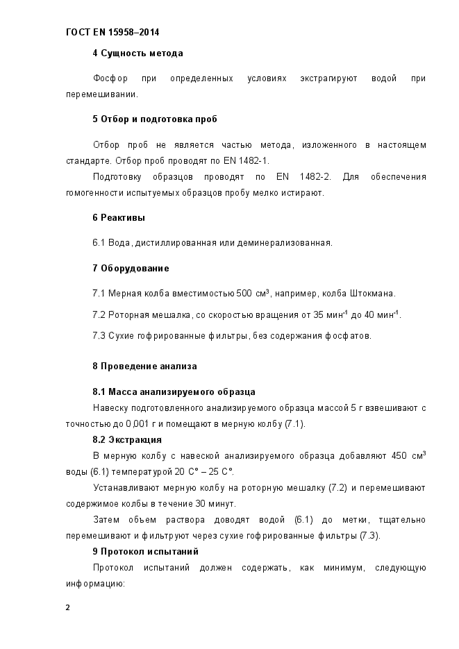 Настоящий стандарт устанавливает метод экстракции водорастворимого фосфора. Метод применим для всех удобрений, включая комбинированные, в которых определяют фосфор