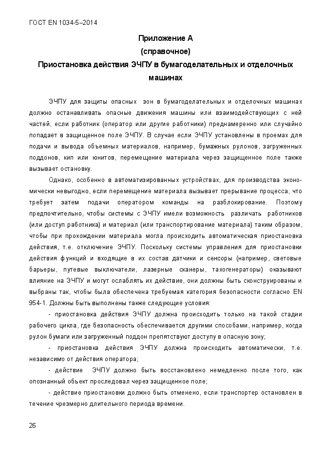 | Область и условия применения: | Требования настоящего стандарта распространяются на листорезательные машины, включая входящие в их состав устройства для размотки рулонного материала (раскаты), устройства для приемки листов, узлы привода и управления, предназначенные для изготовления и отделки бумаги. Настоящий стандарт не распространяется на вакуумотсосные устройства для удаления пыли и обрезков кромок. В нем рассматриваются все существенные опасности, ситуации и события, характерные для листорезательных машин, если они используются по назначению и в условиях, заранее предусмотренных изготовителем.