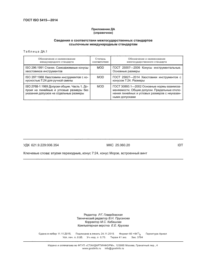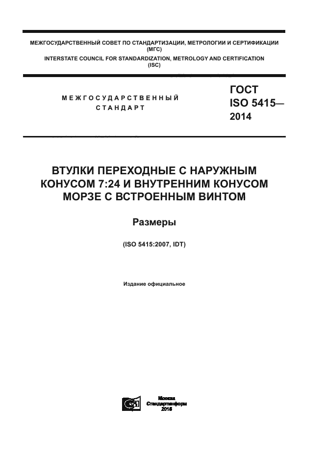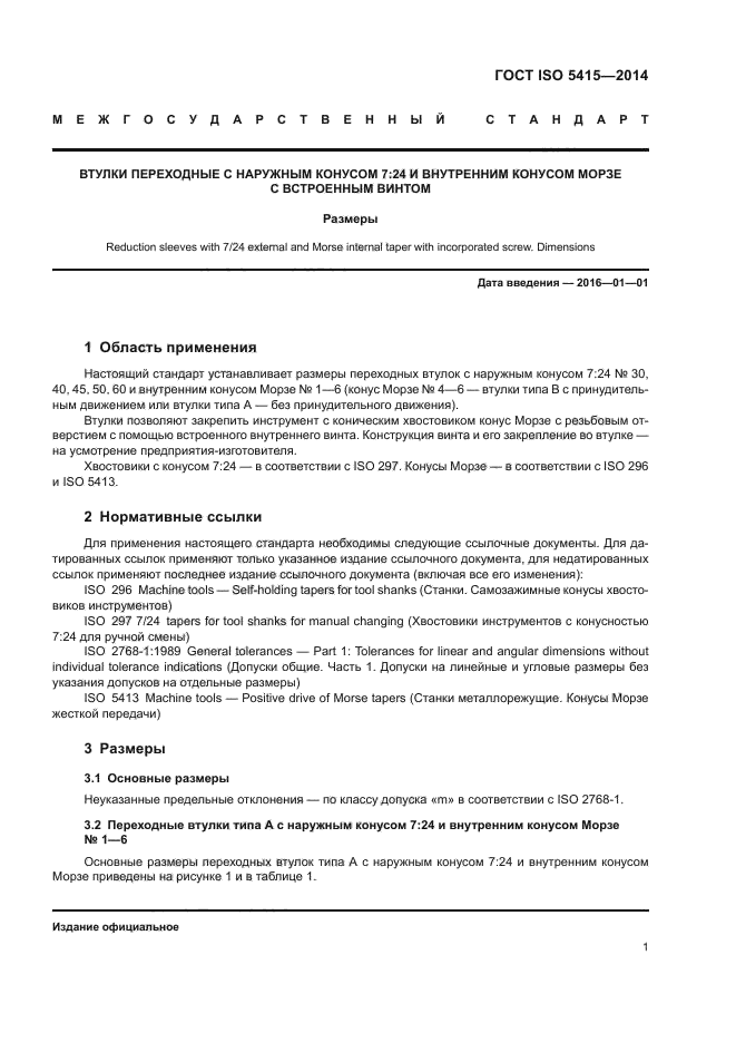 | Область и условия применения: | Настоящий стандарт устанавливает размеры переходных втулок с наружным конусом 7:24 № 30, 40, 45, 50, 60 и внутренним конусом Морзе № 1-6 (конус Морзе № 4-6 - втулки типа В с принудительным движением или втулки типа А - без принудительного движения).