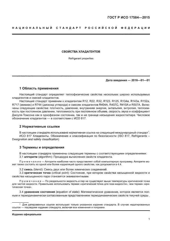 | Область и условия применения: | Настоящий стандарт определяет теплофизические свойства нескольких широко используемых хладагентов и смесей хладагентов.